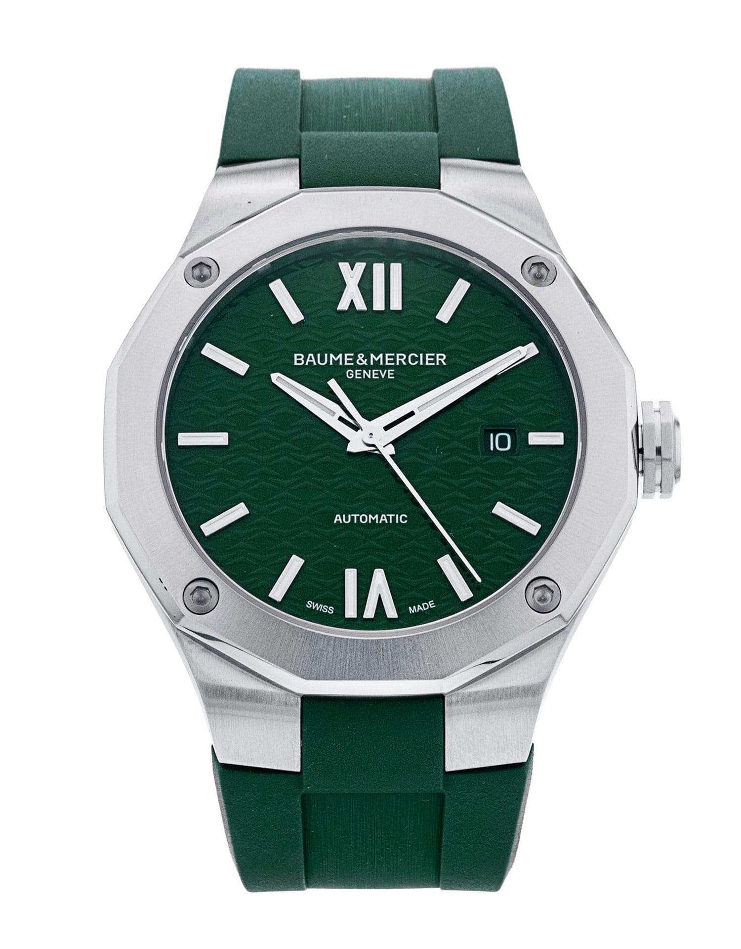 This Baume et Mercier Riviera 10618 has a green baton dial and a rubber strap. This Baume et Mercier has undergone a thorough inspection of water resistance, accuracy, functionality and condition to determine the level of reconditioning required to meet our strict standards. It has also been referenced against technical documents and manufacturer records where available to ensure authenticity and a clean history. All our watches have a 24-month warranty for your peace of mind.