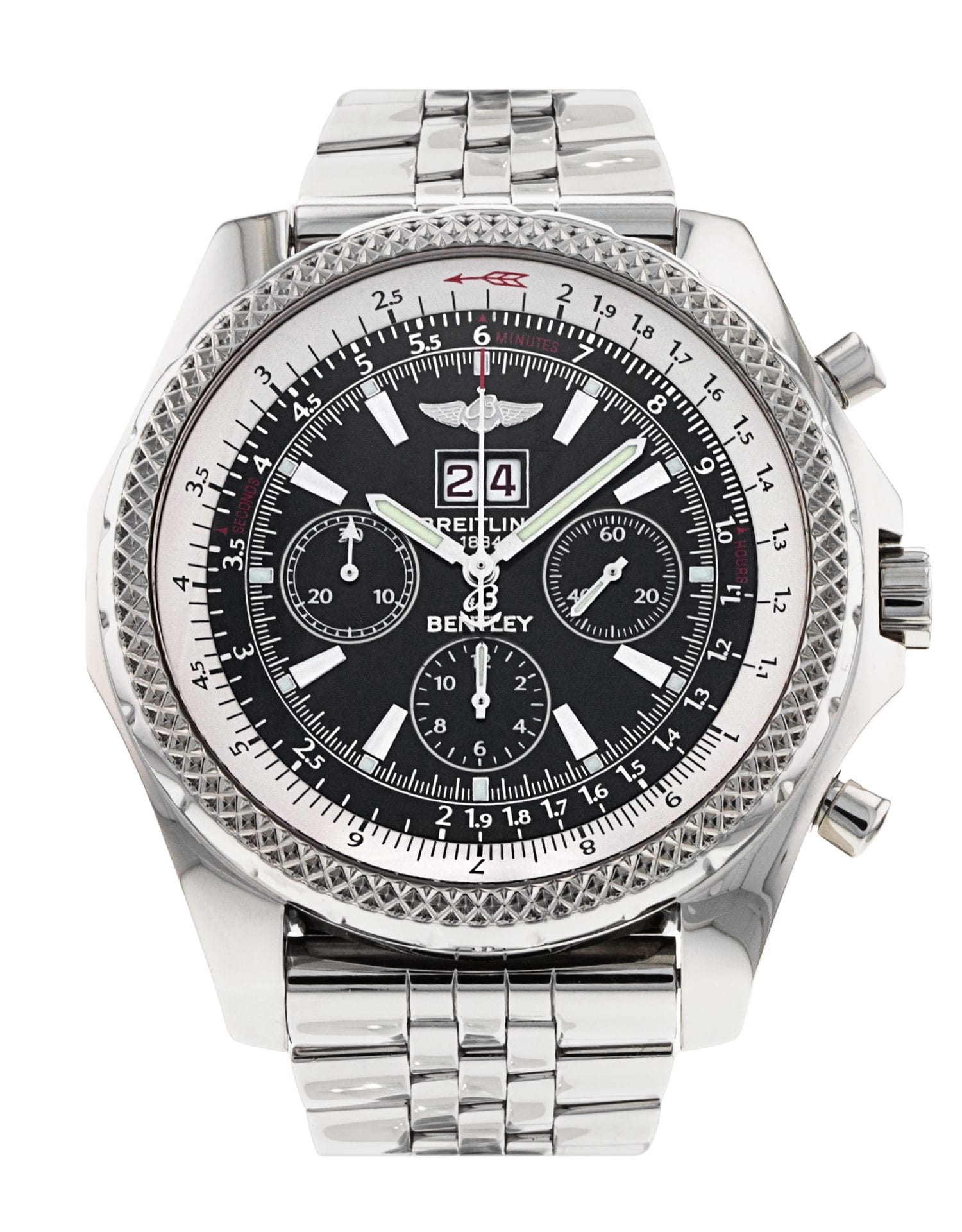 This Breitling Bentley 6.75 A44362 has a black baton dial and a bracelet strap. This Breitling has undergone a thorough inspection of water resistance, accuracy, functionality and condition to determine the level of reconditioning required to meet our strict standards. It has also been referenced against technical documents and manufacturer records where available to ensure authenticity and a clean history. All our watches have a 24-month warranty for your peace of mind.