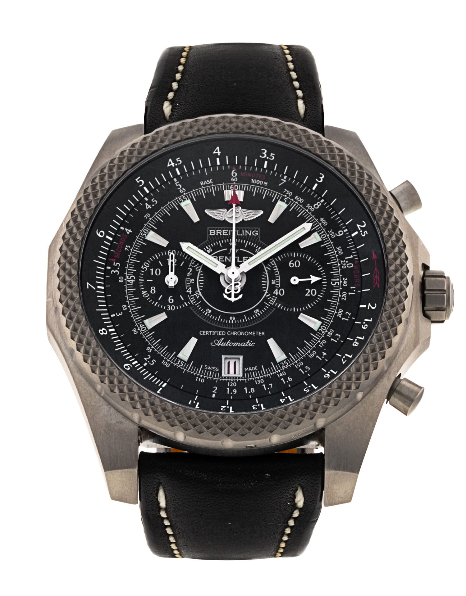 This Breitling Bentley Supersports E27365 has a black dial and a leather strap. This Breitling has undergone a thorough inspection of water resistance, accuracy, functionality and condition to determine the level of reconditioning required to meet our strict standards. It has also been referenced against technical documents and manufacturer records where available to ensure authenticity and a clean history. All our watches have a 24-month warranty for your peace of mind.