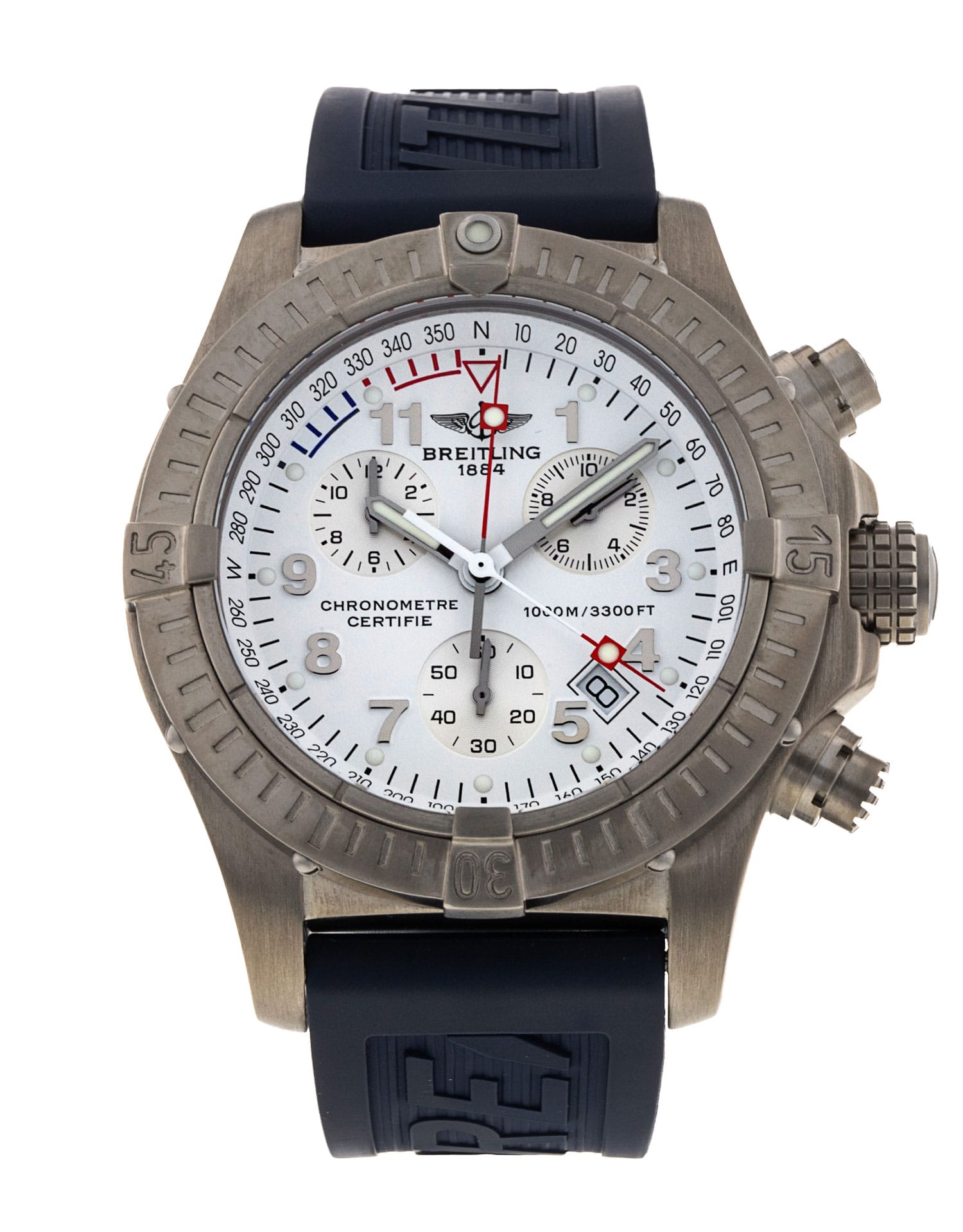 This Breitling Chrono Avenger M1 E73360 has a white arabic dial and a rubber strap. This Breitling has undergone a thorough inspection of water resistance, accuracy, functionality and condition to determine the level of reconditioning required to meet our strict standards. It has also been referenced against technical documents and manufacturer records where available to ensure authenticity and a clean history. All our watches have a 24-month warranty for your peace of mind.