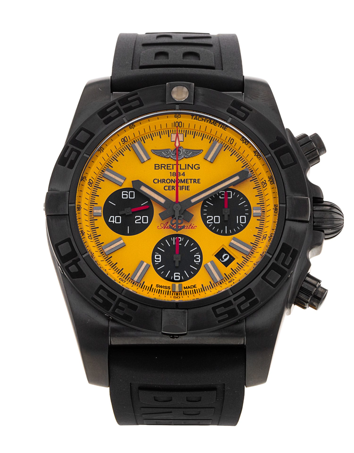 This Breitling Chronomat 44 MB0111 has a yellow baton dial and a rubber strap. This Breitling has undergone a thorough inspection of water resistance, accuracy, functionality and condition to determine the level of reconditioning required to meet our strict standards. It has also been referenced against technical documents and manufacturer records where available to ensure authenticity and a clean history. Our watches have a 24-month warranty for your peace of mind, in conjunction with any remaining manufacturer’s warranty from new or from service.
