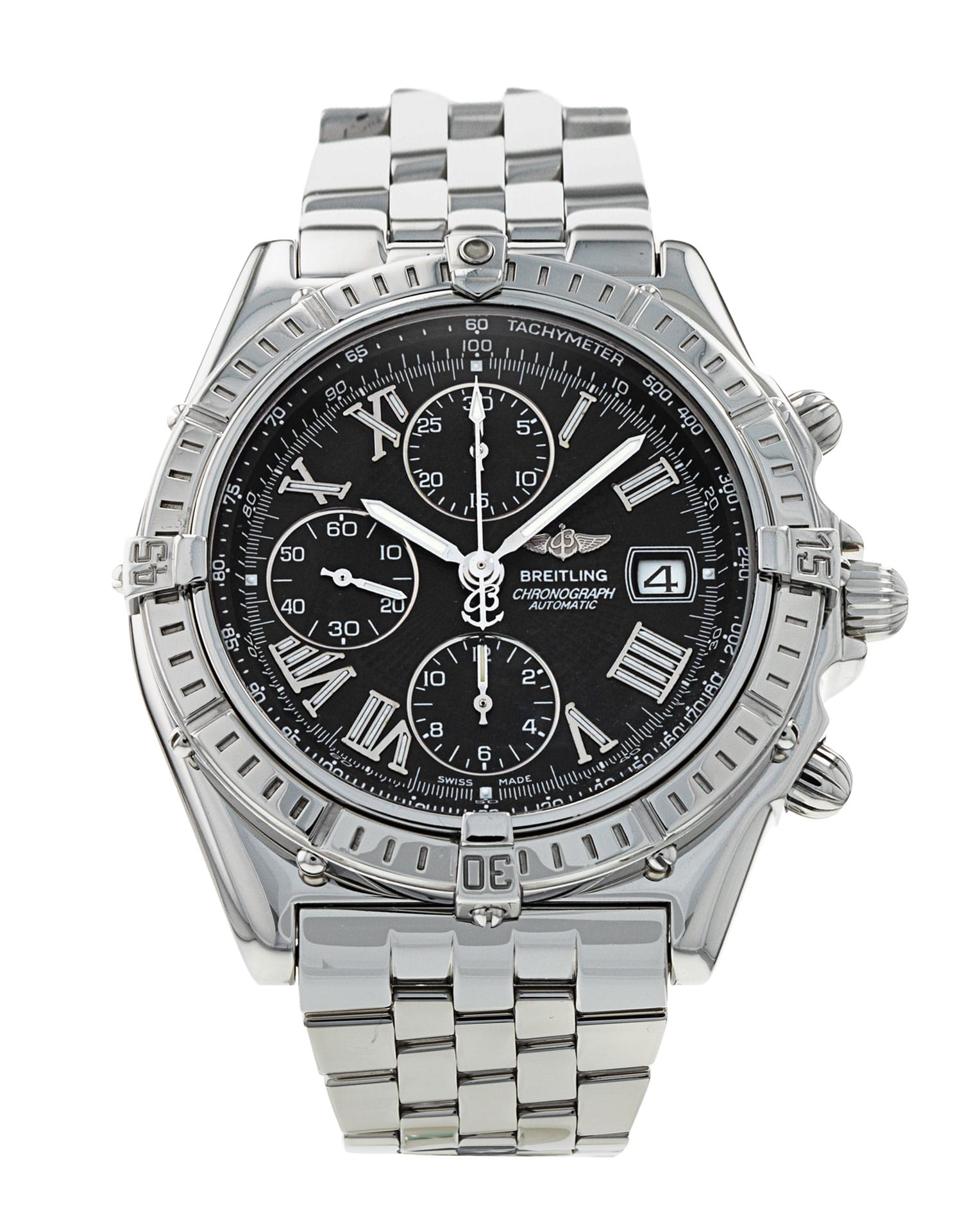 This Breitling Crosswind A13055 has a black roman numeral dial and a bracelet strap. This Breitling has undergone a thorough inspection of water resistance, accuracy, functionality and condition to determine the level of reconditioning required to meet our strict standards. It has also been referenced against technical documents and manufacturer records where available to ensure authenticity and a clean history. All our watches have a 24-month warranty for your peace of mind.
