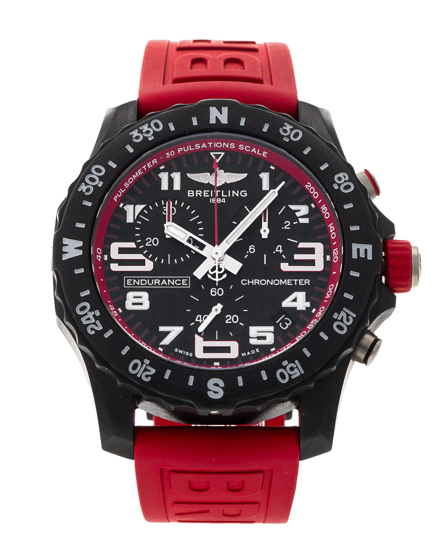 This Breitling Endurance Pro X82310 has a black arabic dial and a rubber strap. This Breitling has undergone a thorough inspection of water resistance, accuracy, functionality and condition to determine the level of reconditioning required to meet our strict standards. It has also been referenced against technical documents and manufacturer records where available to ensure authenticity and a clean history. All our watches have a 24-month warranty for your peace of mind.