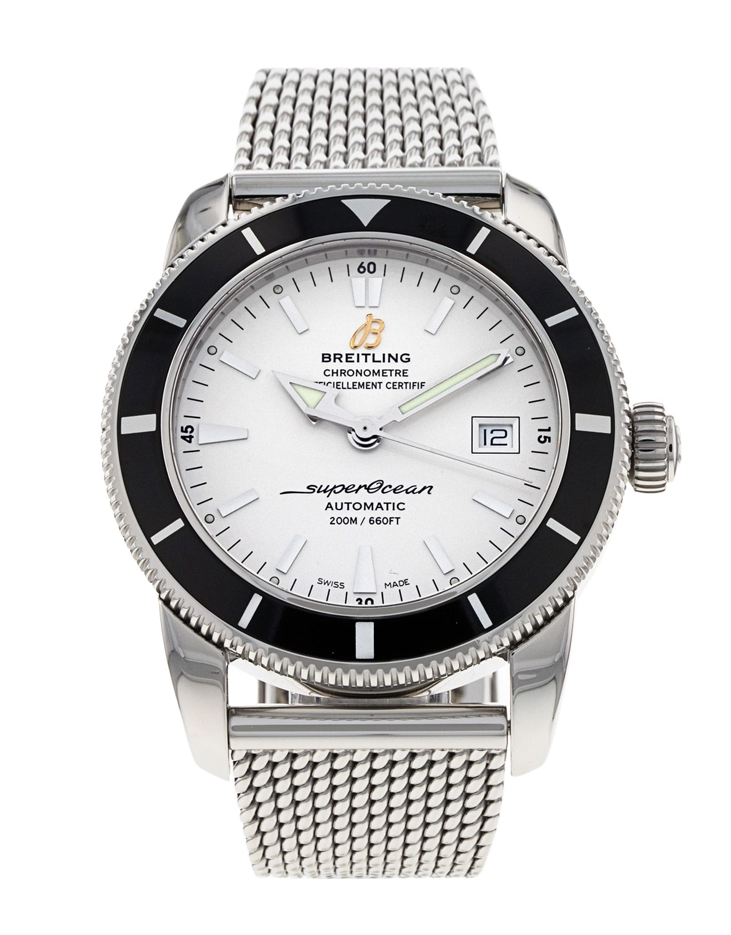 This Breitling SuperOcean Heritage A17321 has a white baton dial and a bracelet strap. This Breitling has undergone a thorough inspection of water resistance, accuracy, functionality and condition to determine the level of reconditioning required to meet our strict standards. It has also been referenced against technical documents and manufacturer records where available to ensure authenticity and a clean history. All our watches have a 24-month warranty for your peace of mind.