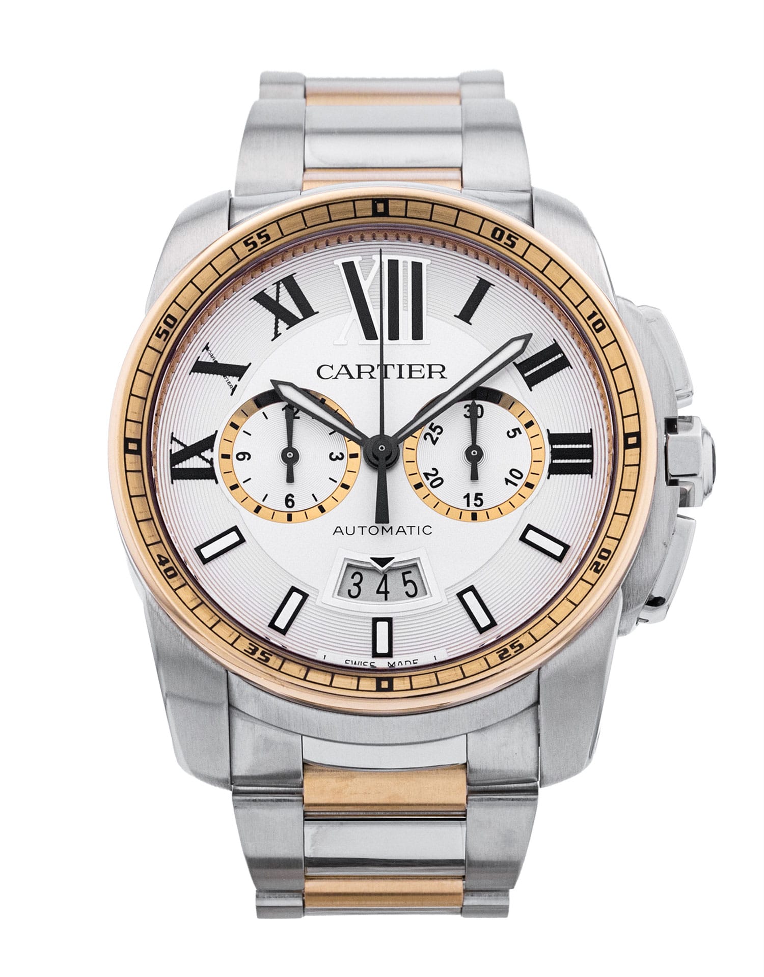 This Cartier Calibre De Cartier W7100042 has a silver dial and a bracelet strap. This Cartier has undergone a thorough inspection of accuracy, functionality and condition at our Cartier certified service centre to determine the level of reconditioning required to meet our strict standards. It has also been checked against our records to ensure authenticity. All our watches have a 24-month warranty for your peace of mind.