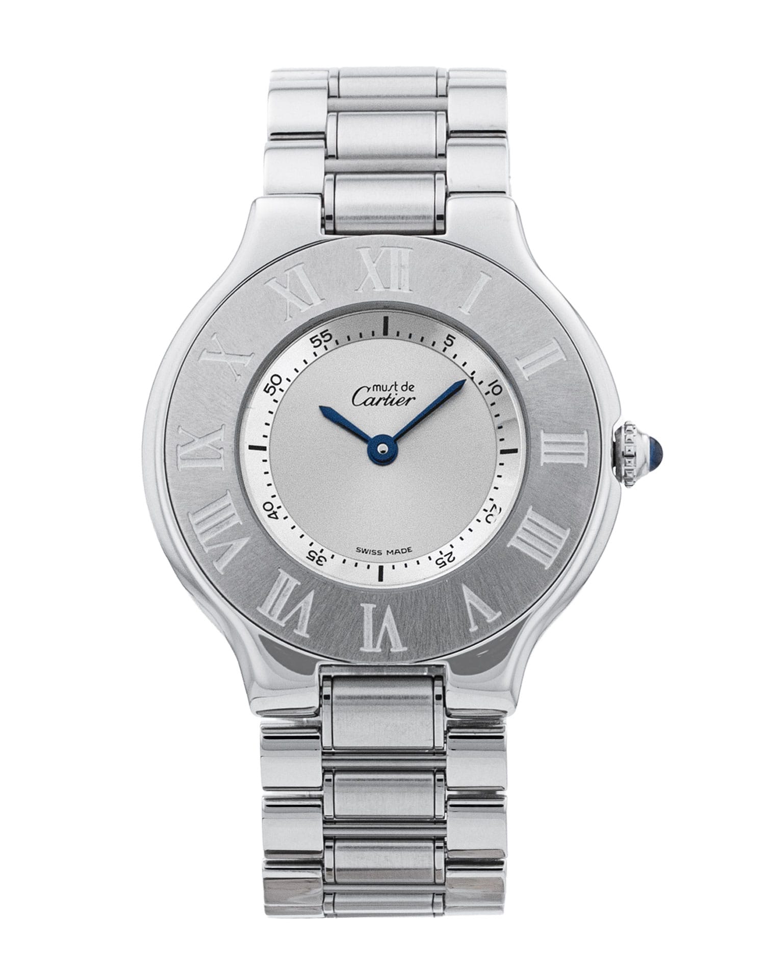 This Cartier Must 21 W10110T2 has a silver dial and a bracelet strap. This Cartier has undergone a thorough inspection of accuracy, functionality and condition at our Cartier certified service centre to determine the level of reconditioning required to meet our strict standards. It has also been checked against our records to ensure authenticity. All our watches have a 24-month warranty for your peace of mind.