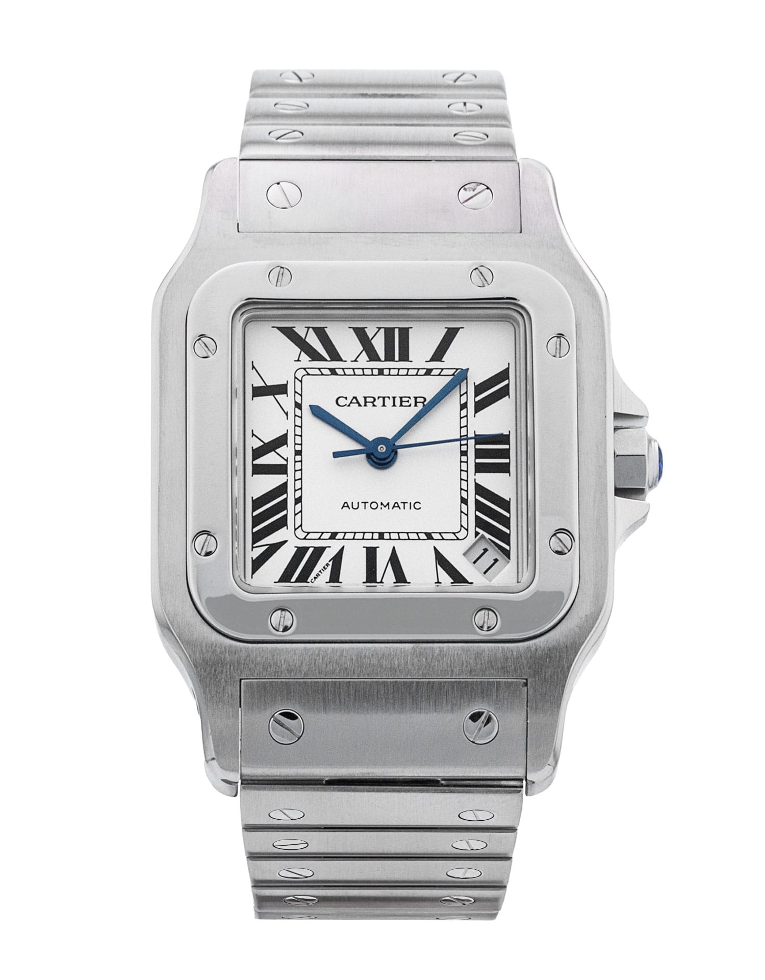 This Cartier Santos Galbee W20098D6 has a silver roman numeral dial and a bracelet strap. This Cartier has undergone a thorough inspection of accuracy, functionality and condition at our Cartier certified service centre to determine the level of reconditioning required to meet our strict standards. It has also been checked against our records to ensure authenticity. All our watches have a 24-month warranty for your peace of mind.