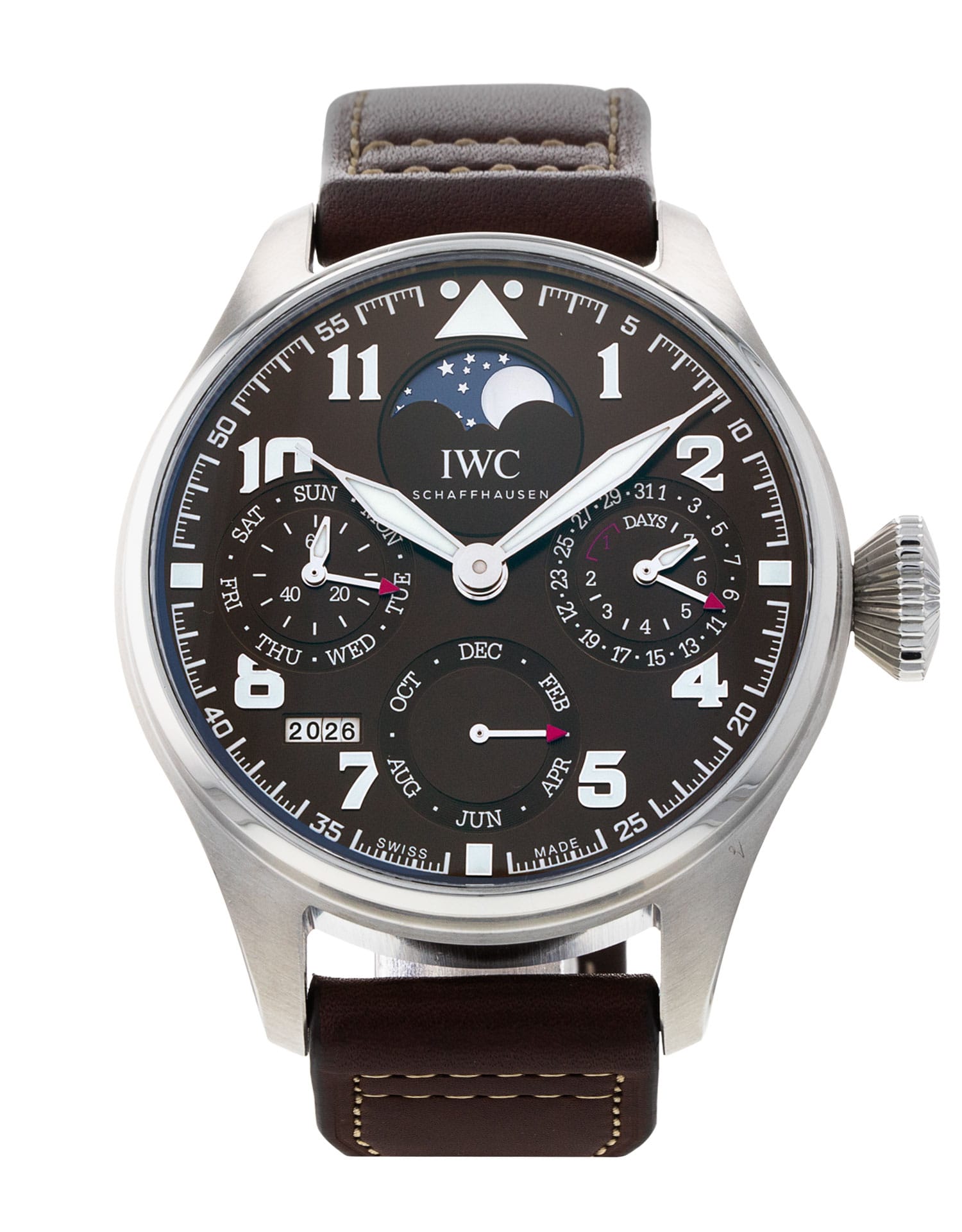 This IWC Big Pilot's IW503801 has a brown arabic dial and a leather strap. This IWC has undergone a thorough inspection of accuracy, functionality and condition at our IWC certified service centre to determine the level of reconditioning required to meet our strict standards. It has also been checked against our records to ensure authenticity. All our watches have a 24-month warranty for your peace of mind.