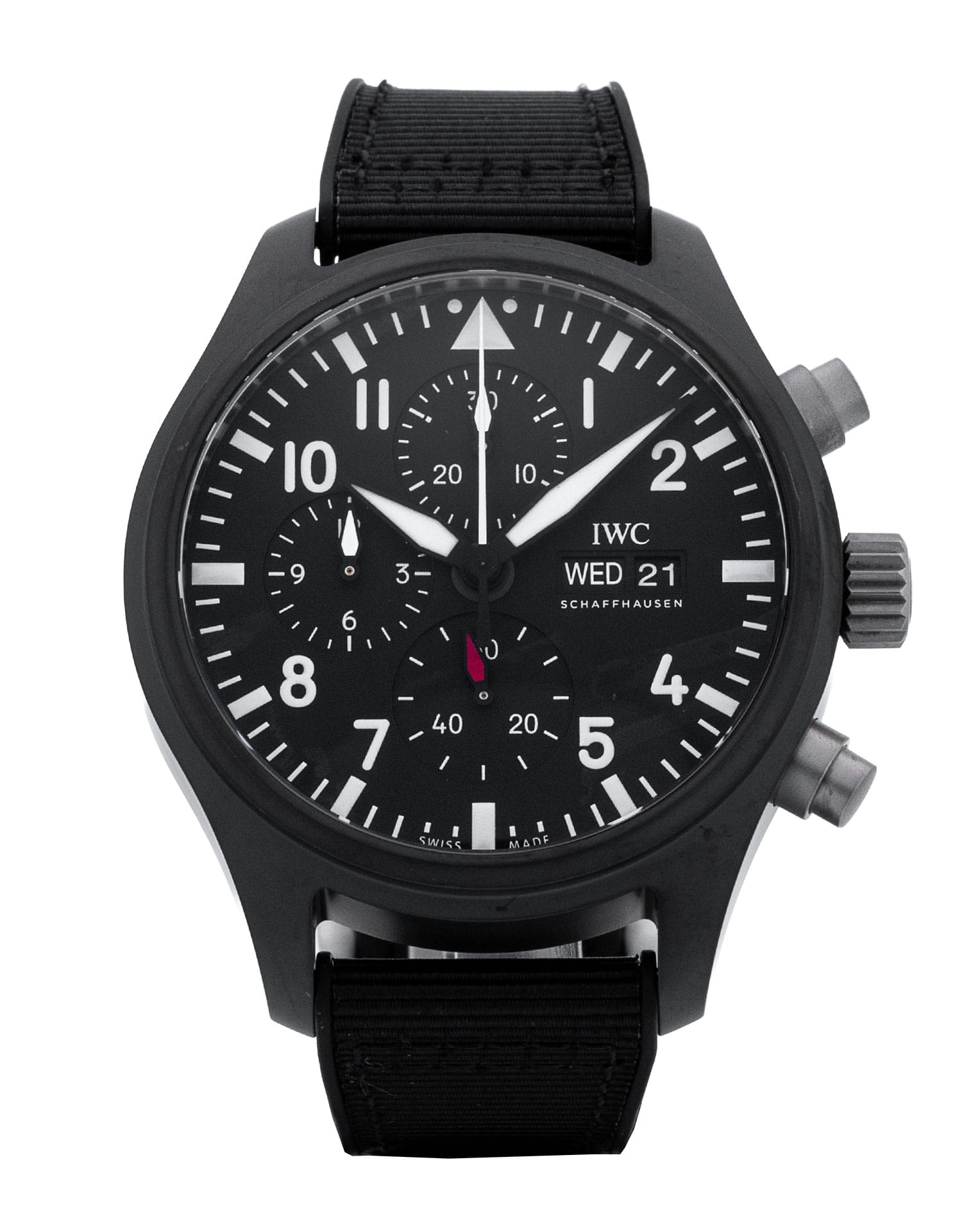 This IWC Pilot's Chrono IW389101 has a black arabic dial and a fabric strap. This IWC has undergone a thorough inspection of accuracy, functionality and condition at our IWC certified service centre to determine the level of reconditioning required to meet our strict standards. It has also been checked against our records to ensure authenticity. Our watches have a 24-month warranty for your peace of mind, in conjunction with any remaining manufacturer’s warranty from new or from service.