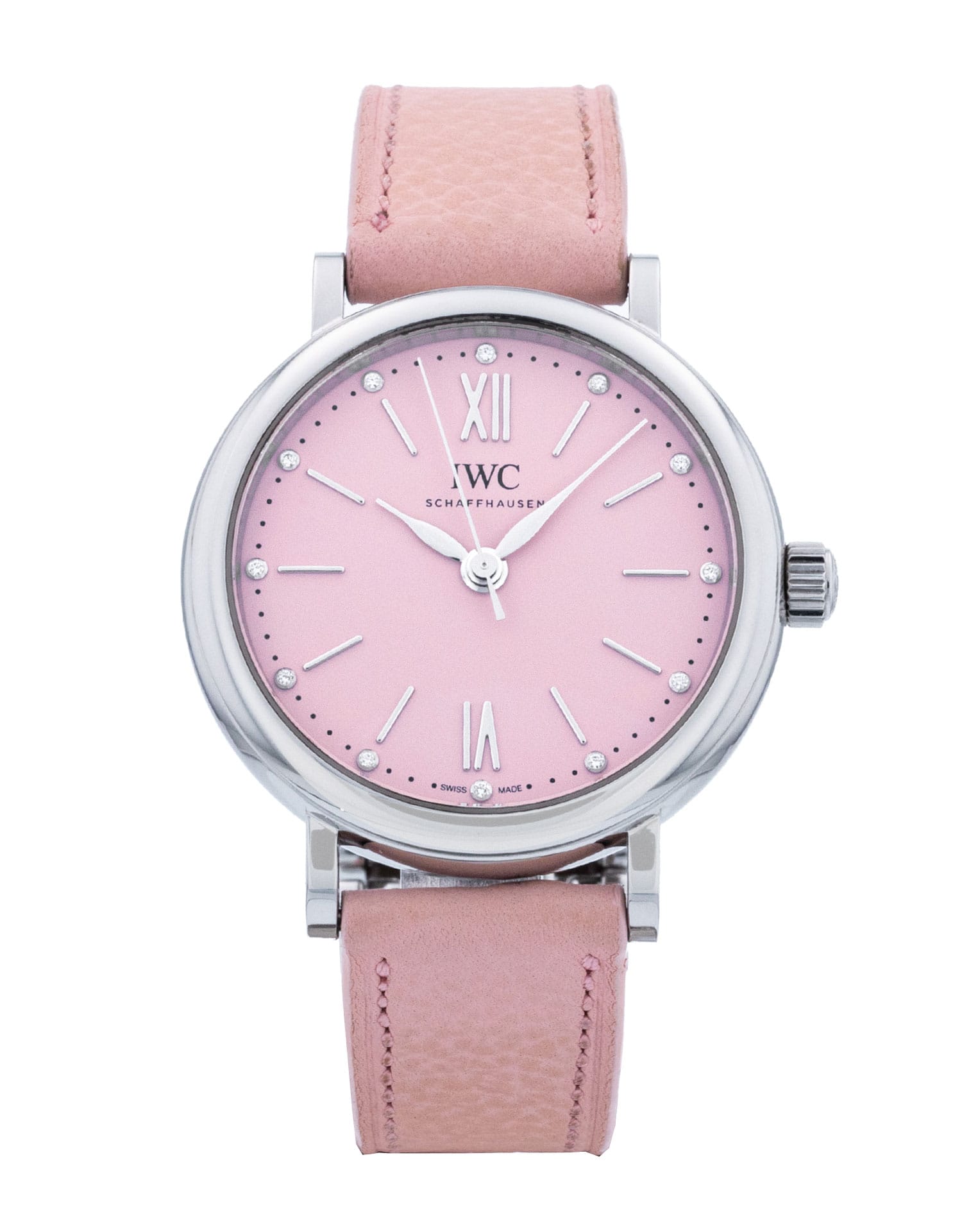 This IWC Portofino Automatic IW357417 has a pink diamond dial and a leather strap. This IWC has undergone a thorough inspection of accuracy, functionality and condition at our IWC certified service centre to determine the level of reconditioning required to meet our strict standards. It has also been checked against our records to ensure authenticity. Our watches have a 24-month warranty for your peace of mind, in conjunction with any remaining manufacturer’s warranty from new or from service.
