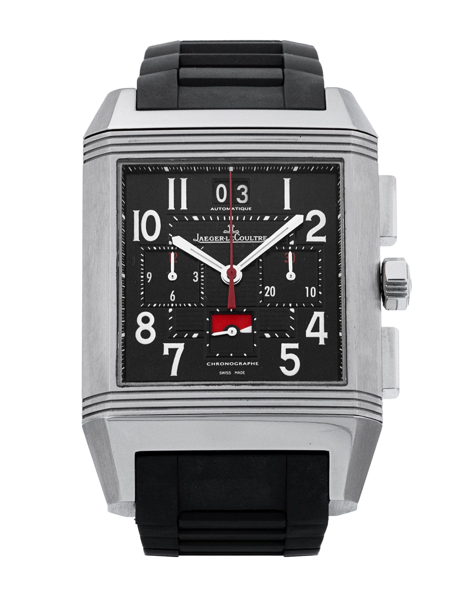 This Jaeger-LeCoultre Reverso Squadra World Chronograph 702T470 has a black arabic dial and a rubber strap. This Jaeger-LeCoultre has undergone a thorough inspection of accuracy, functionality and condition at our Jaeger-LeCoultre certified service centre to determine the level of reconditioning required to meet our strict standards. It has also been checked against our records to ensure authenticity. All our watches have a 24-month warranty for your peace of mind.