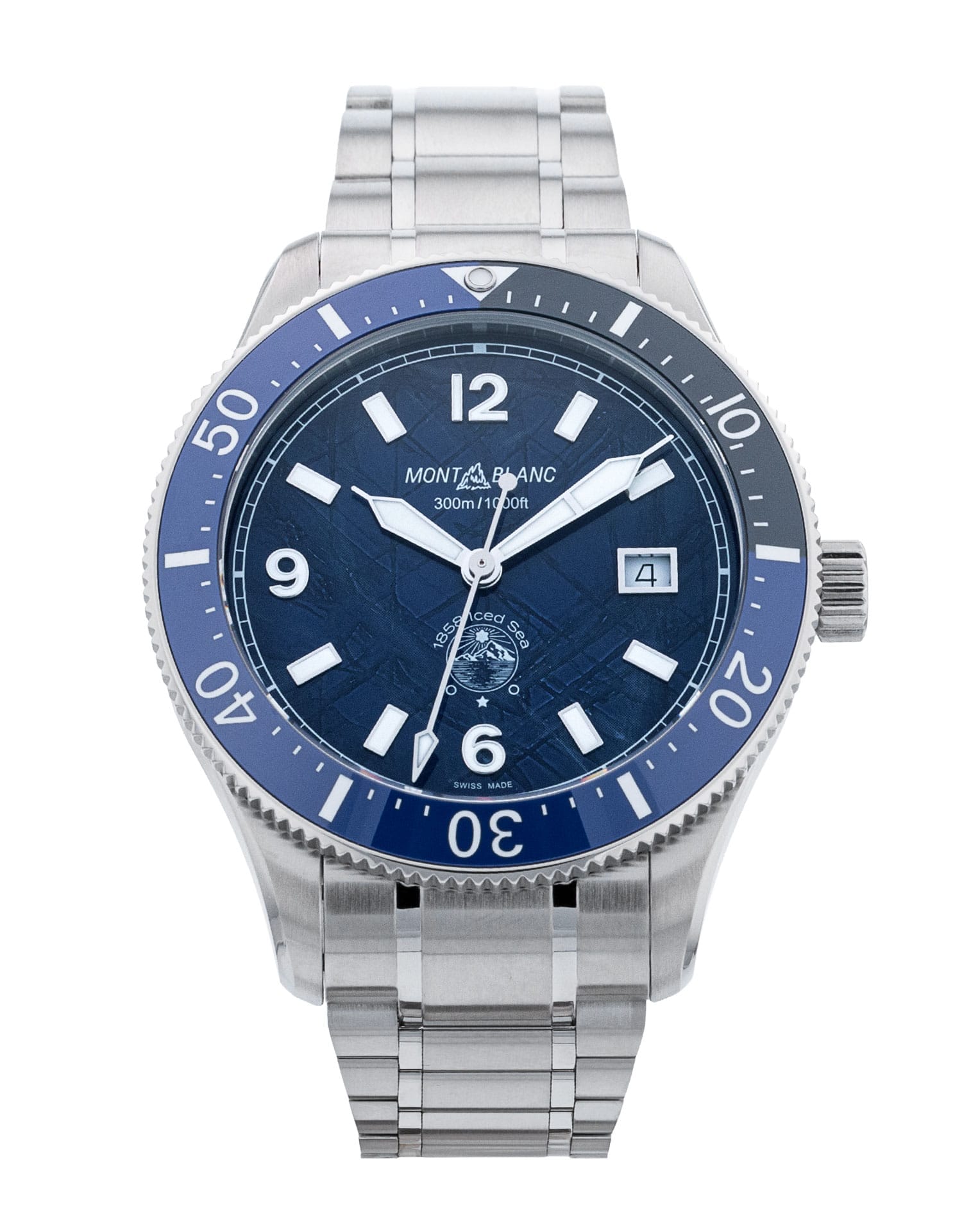 This Montblanc 1858 129369 has a blue quarter arabic dial and a bracelet strap. This Montblanc has undergone a thorough inspection of water resistance, accuracy, functionality and condition to determine the level of reconditioning required to meet our strict standards. It has also been referenced against technical documents and manufacturer records where available to ensure authenticity and a clean history. All our watches have a 24-month warranty for your peace of mind.
