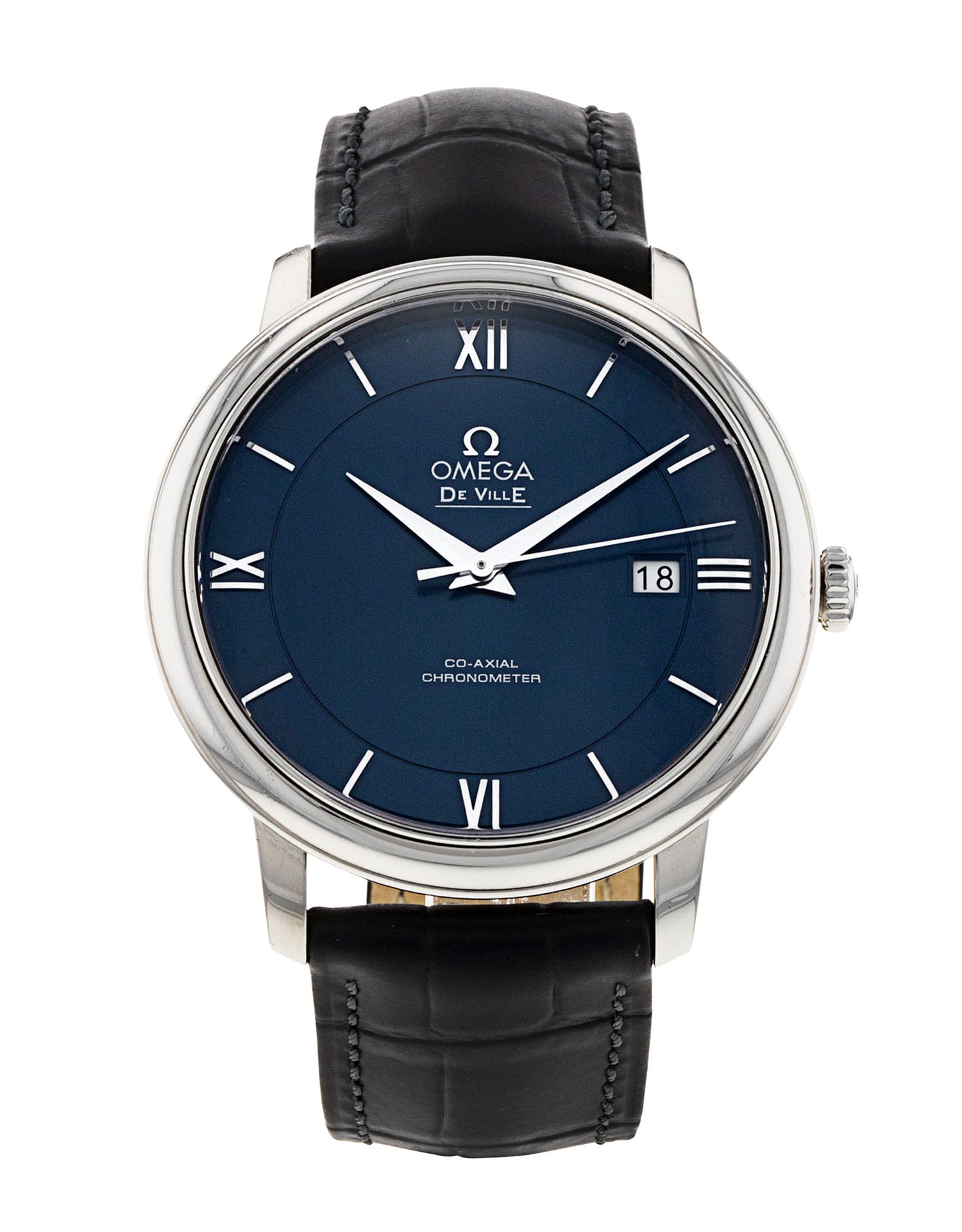 This Omega De Ville Prestige 424.13.40.20.03.001 has a blue quarter roman numeral dial and a leather strap. This Omega has undergone a thorough inspection of accuracy, functionality and condition at our Omega certified service centre to determine the level of reconditioning required to meet our strict standards. It has also been checked against our records to ensure authenticity. Our watches have a 24-month warranty for your peace of mind, in conjunction with any remaining manufacturer’s warranty from new or from service.