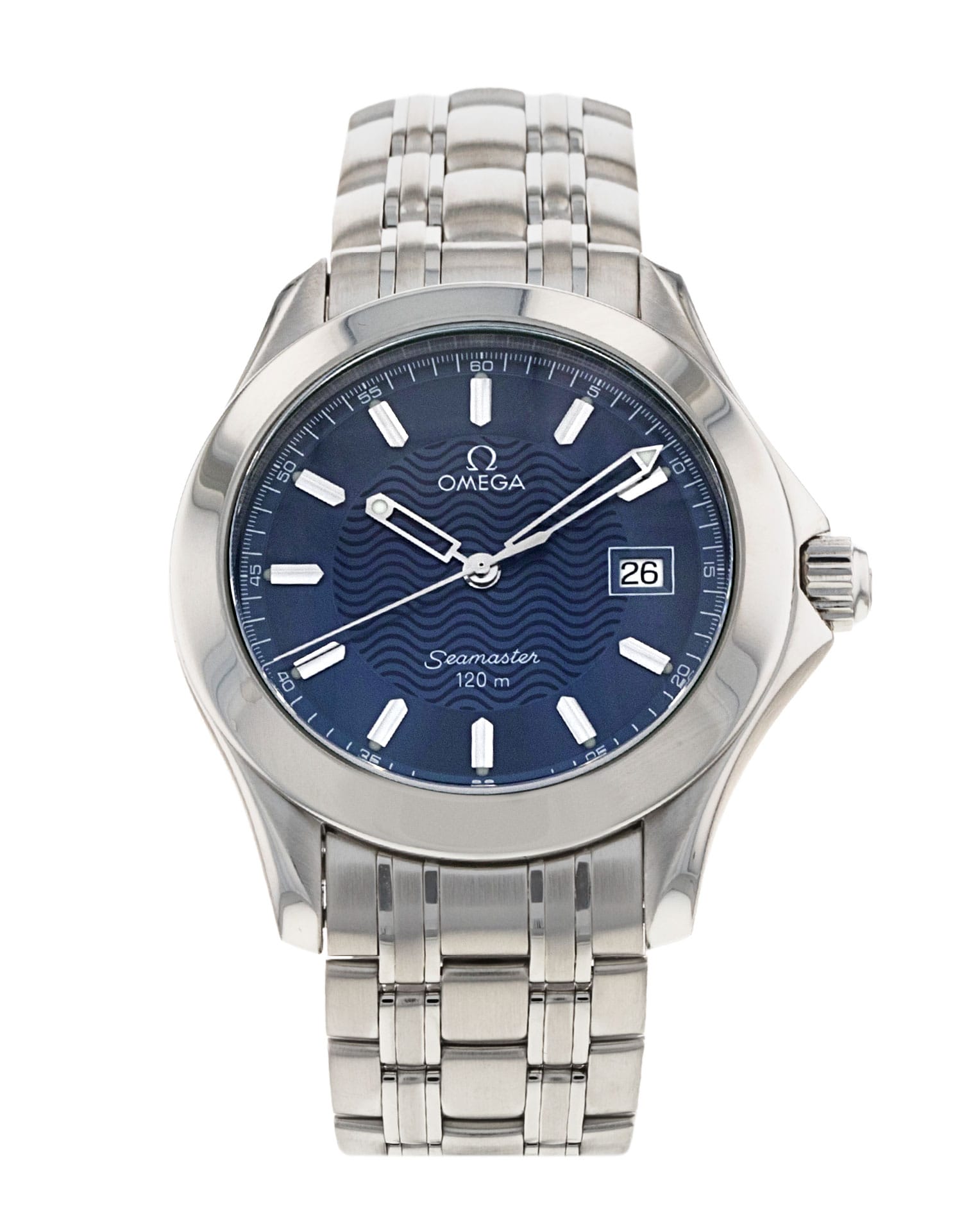 This Omega Seamaster 120m 2511.81.00 has a blue baton dial and a bracelet strap. This Omega has undergone a thorough inspection of accuracy, functionality and condition at our Omega certified service centre to determine the level of reconditioning required to meet our strict standards. It has also been checked against our records to ensure authenticity. All our watches have a 24-month warranty for your peace of mind.