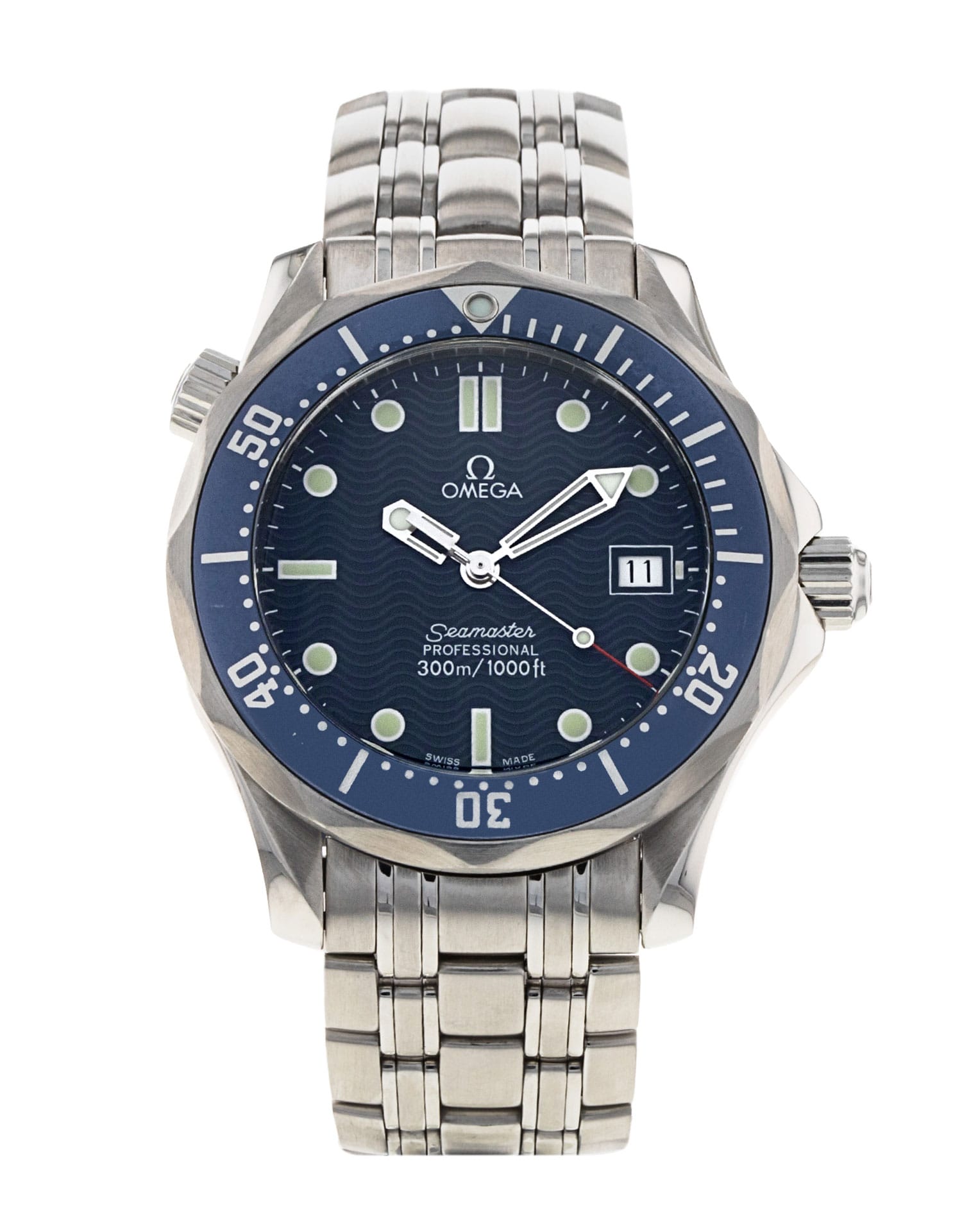 This Omega Seamaster 300m Mid-Size 2561.80.00 has a blue dial and a bracelet strap. This Omega has undergone a thorough inspection of accuracy, functionality and condition at our Omega certified service centre to determine the level of reconditioning required to meet our strict standards. It has also been checked against our records to ensure authenticity. All our watches have a 24-month warranty for your peace of mind.