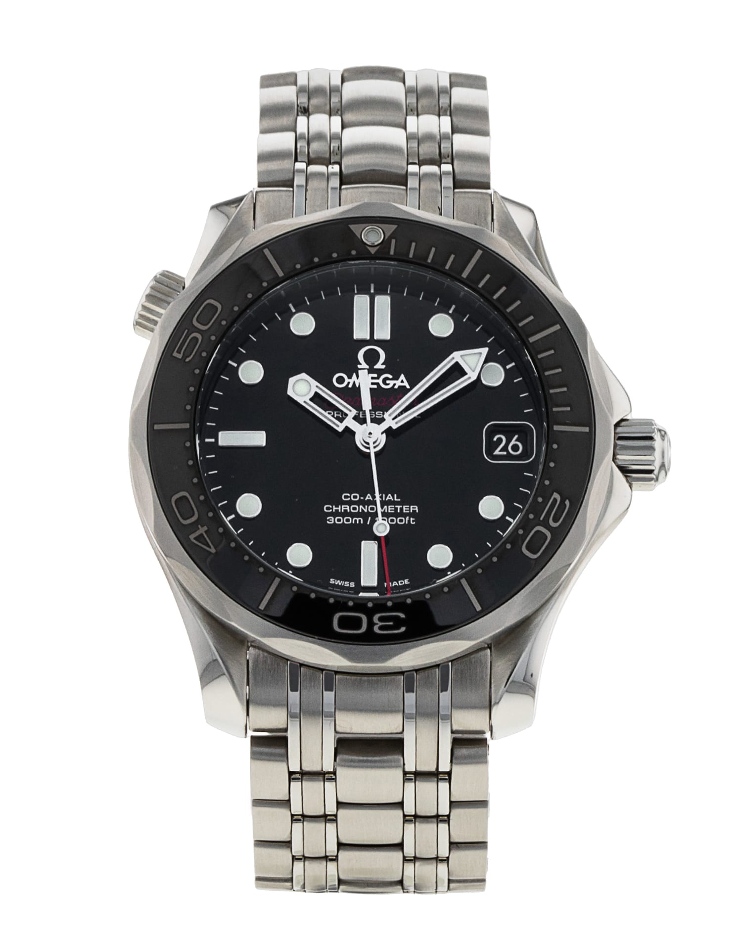 This Omega Seamaster 300m 212.30.36.20.01.002 has a black baton dial and a bracelet strap. This Omega has undergone a thorough inspection of accuracy, functionality and condition at our Omega certified service centre to determine the level of reconditioning required to meet our strict standards. It has also been checked against our records to ensure authenticity. All our watches have a 24-month warranty for your peace of mind.