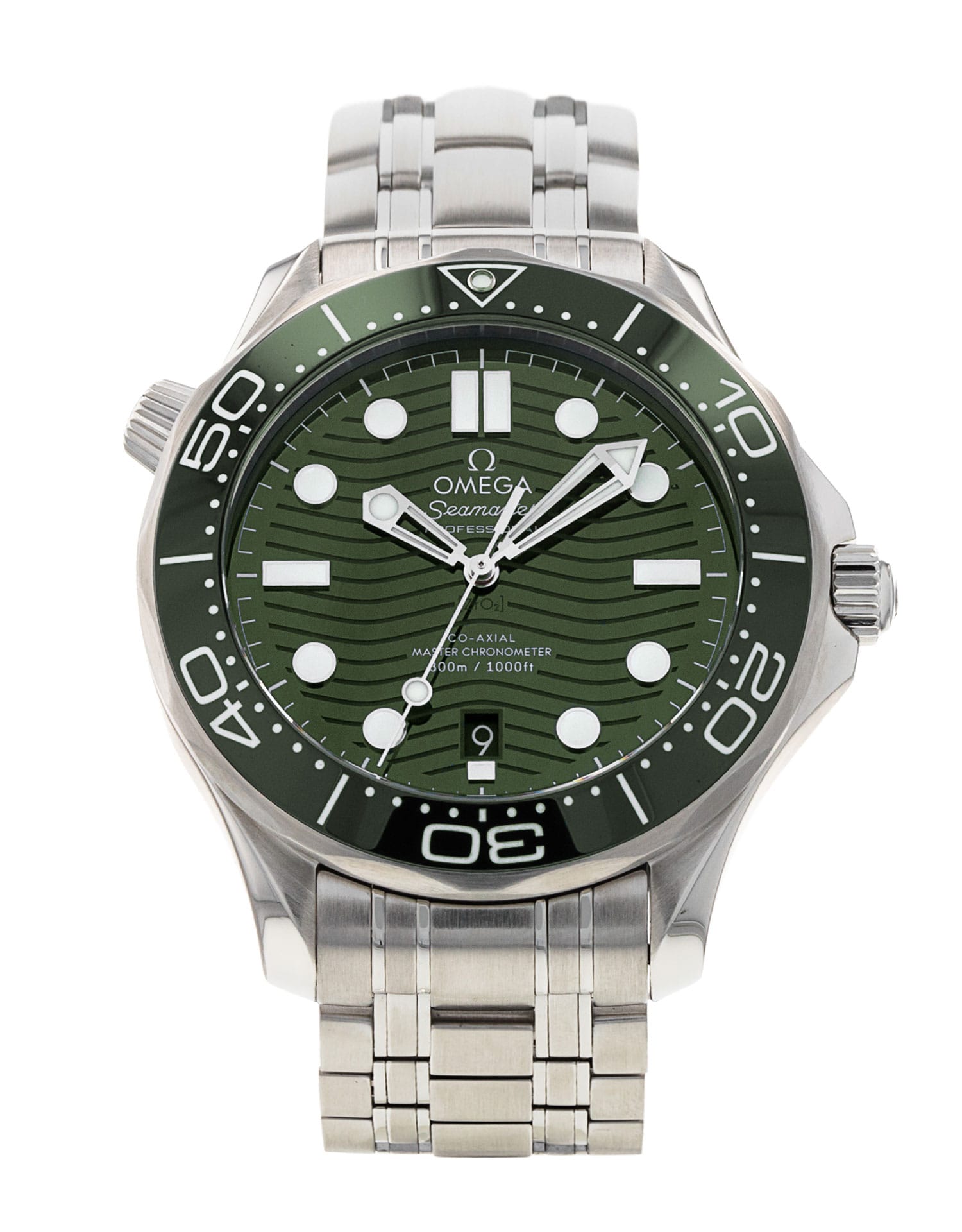 This Omega Seamaster Diver 300m 210.30.42.20.10.001 has a green dial and a bracelet strap. This Omega has undergone a thorough inspection of accuracy, functionality and condition at our Omega certified service centre to determine the level of reconditioning required to meet our strict standards. It has also been checked against our records to ensure authenticity. Our watches have a 24-month warranty for your peace of mind, in conjunction with any remaining manufacturer’s warranty from new or from service.