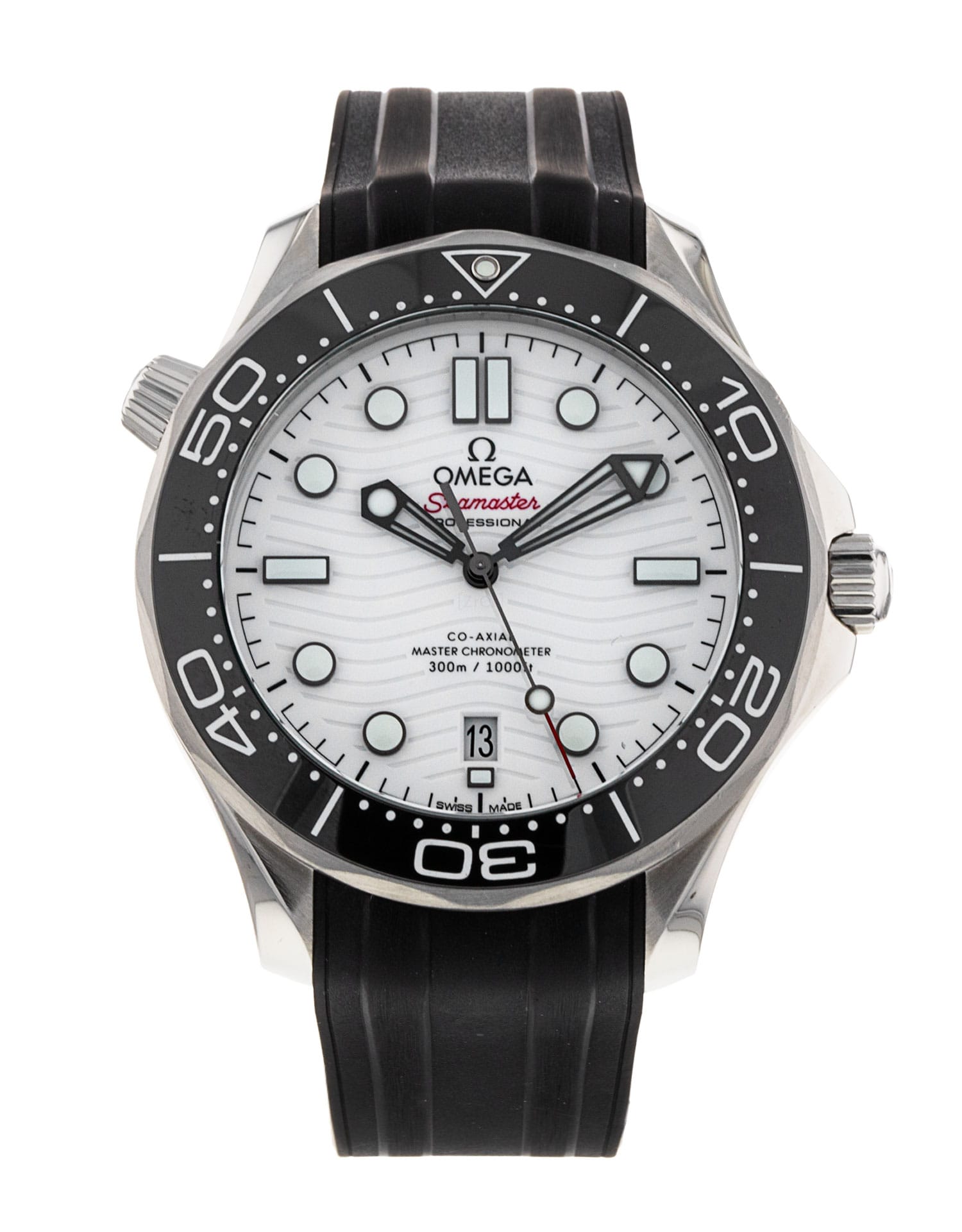 This Omega Seamaster Diver 300m 210.32.42.20.04.001 has a white dial and a rubber strap. This Omega has undergone a thorough inspection of accuracy, functionality and condition at our Omega certified service centre to determine the level of reconditioning required to meet our strict standards. It has also been checked against our records to ensure authenticity. Our watches have a 24-month warranty for your peace of mind, in conjunction with any remaining manufacturer’s warranty from new or from service.