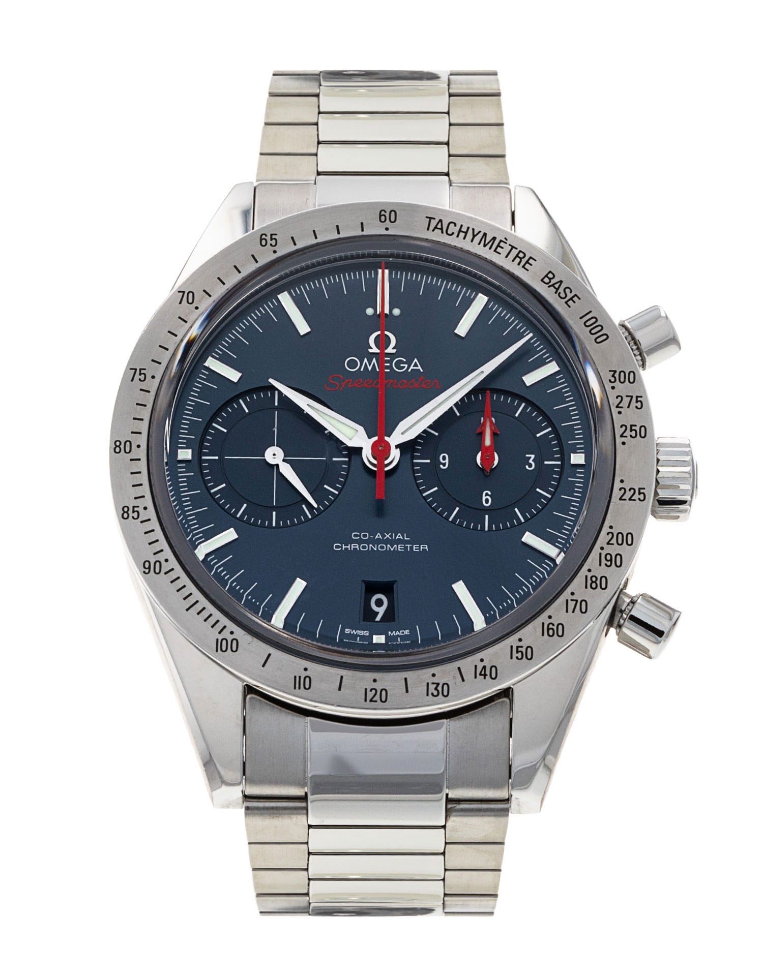 This Omega Speedmaster 57 331.10.42.51.03.001 has a blue baton dial and a bracelet strap. This Omega has undergone a thorough inspection of accuracy, functionality and condition at our Omega certified service centre to determine the level of reconditioning required to meet our strict standards. It has also been checked against our records to ensure authenticity. All our watches have a 24-month warranty for your peace of mind.