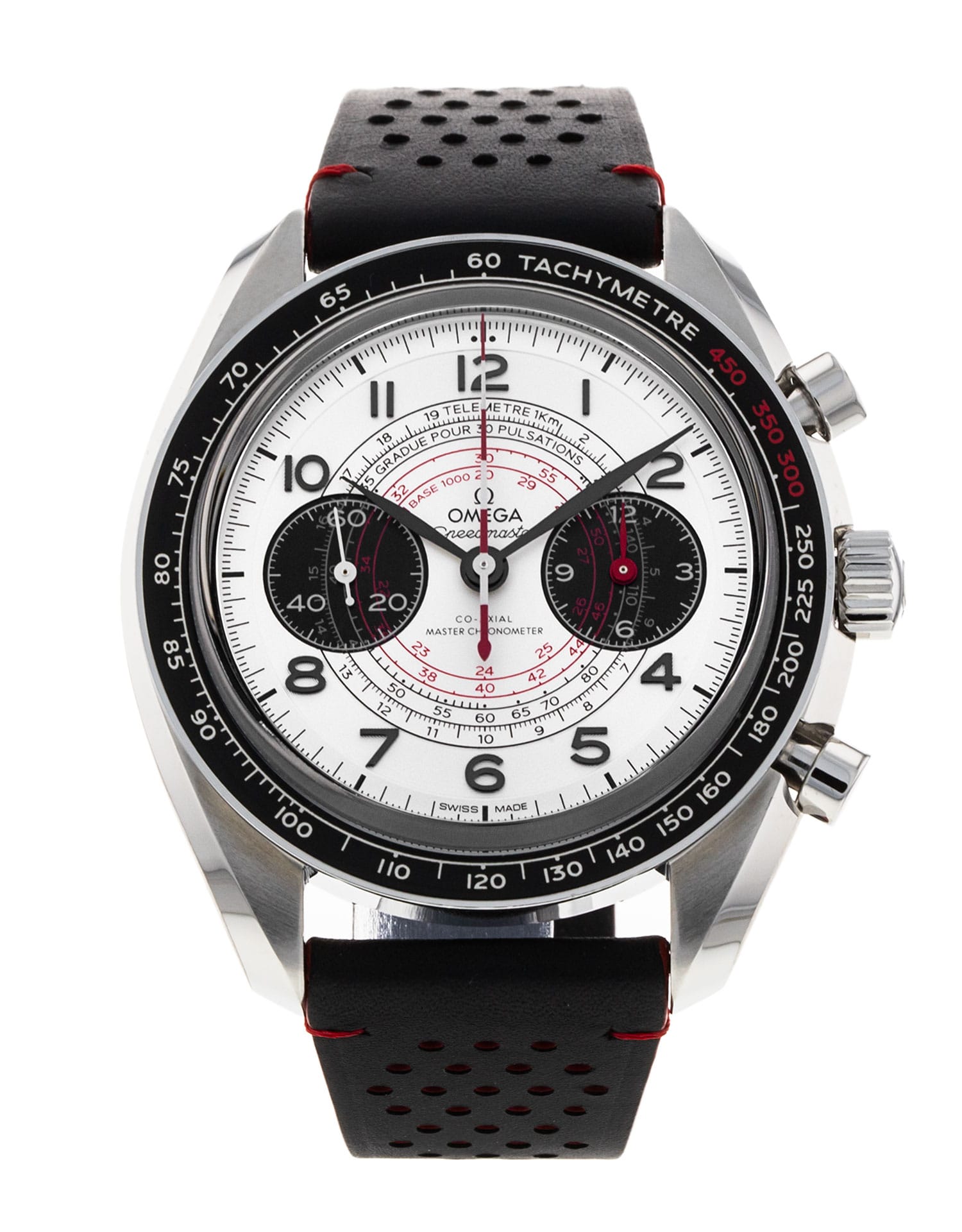 This Omega Speedmaster Chronoscope 329.32.43.51.02.001 has a silver baton dial and a leather strap. This Omega has undergone a thorough inspection of accuracy, functionality and condition at our Omega certified service centre to determine the level of reconditioning required to meet our strict standards. It has also been checked against our records to ensure authenticity. Our watches have a 24-month warranty for your peace of mind, in conjunction with any remaining manufacturer’s warranty from new or from service.
