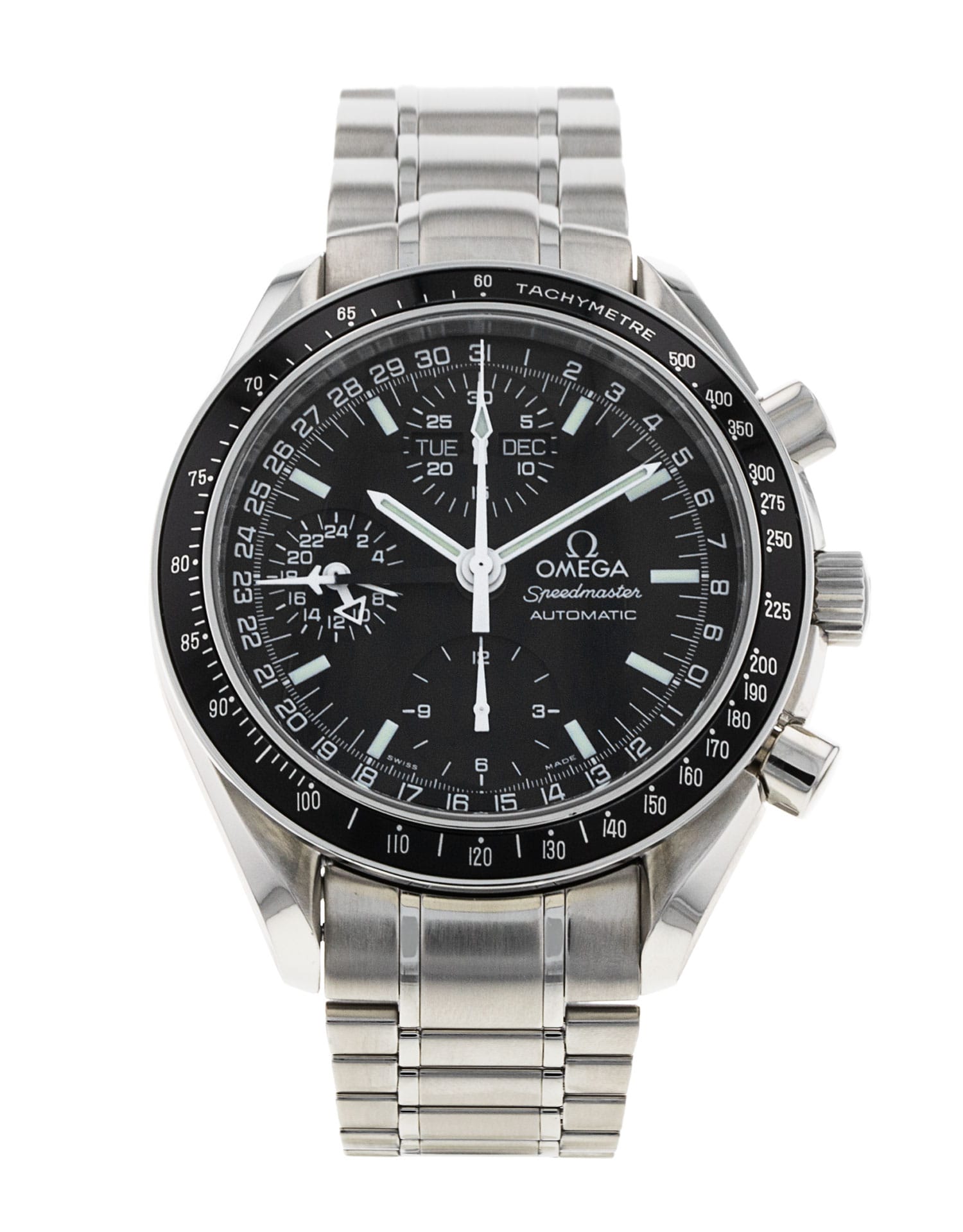 This Omega Speedmaster DayDate 3520.50.00 has a black baton dial and a bracelet strap. This Omega has undergone a thorough inspection of accuracy, functionality and condition at our Omega certified service centre to determine the level of reconditioning required to meet our strict standards. It has also been checked against our records to ensure authenticity. All our watches have a 24-month warranty for your peace of mind.