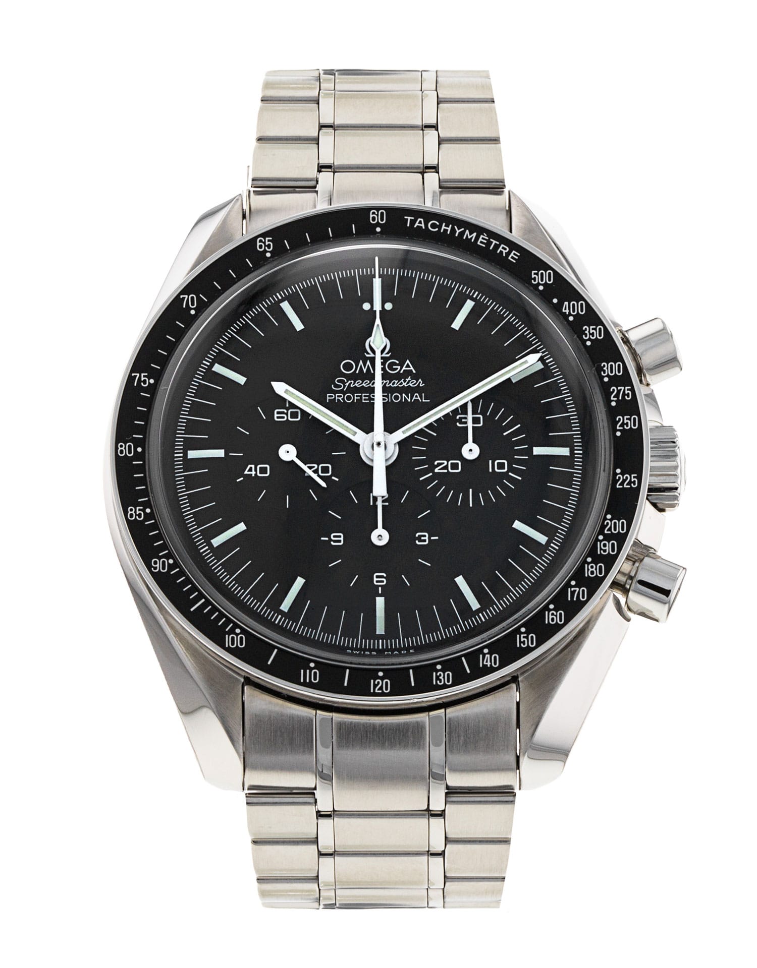 This Omega Speedmaster Moonwatch 311.30.42.30.01.005 has a black baton dial and a bracelet strap. This Omega has undergone a thorough inspection of accuracy, functionality and condition at our Omega certified service centre to determine the level of reconditioning required to meet our strict standards. It has also been checked against our records to ensure authenticity. All our watches have a 24-month warranty for your peace of mind.