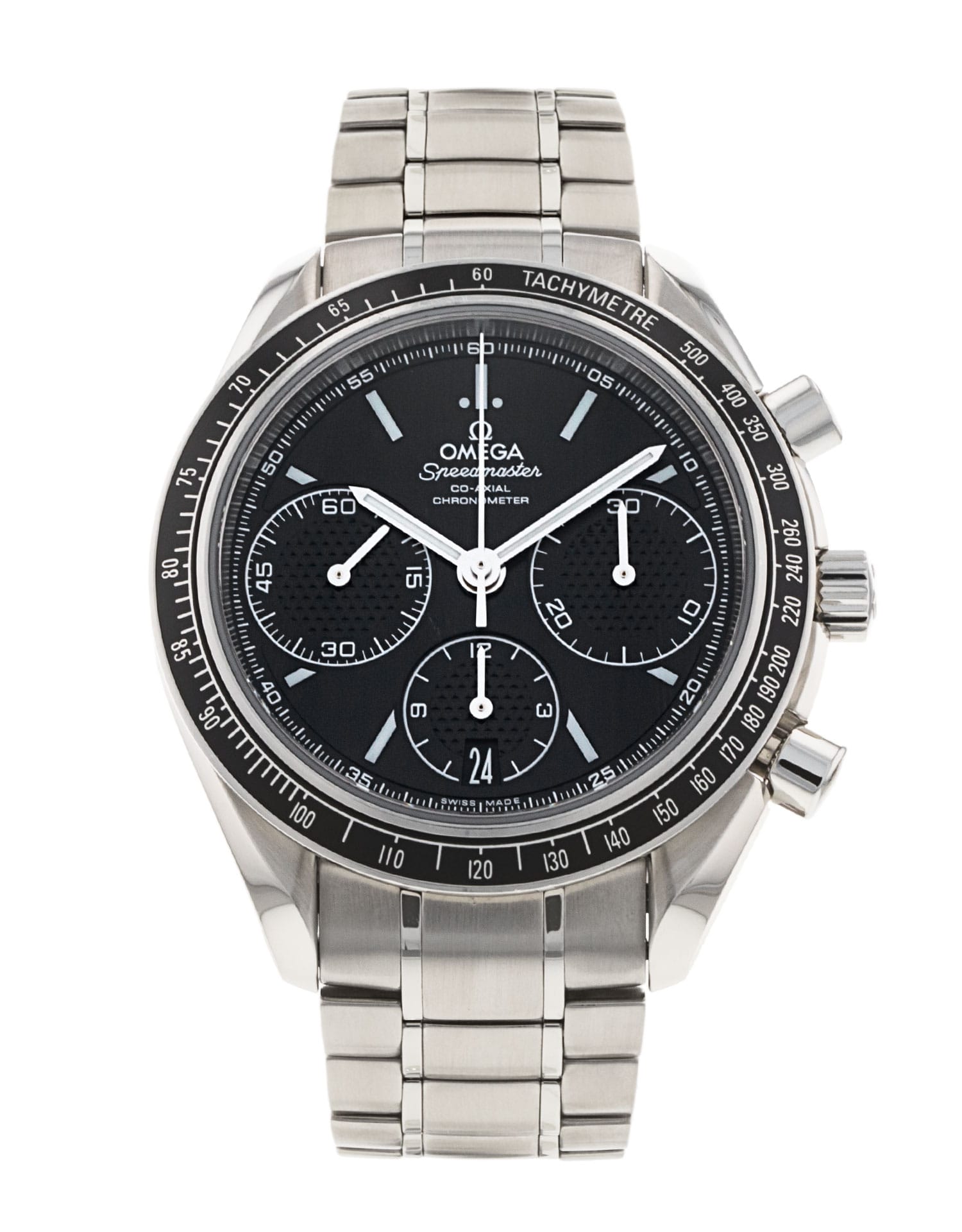 This Omega Speedmaster Racing 326.30.40.50.01.001 has a black baton dial and a bracelet strap. This Omega has undergone a thorough inspection of accuracy, functionality and condition at our Omega certified service centre to determine the level of reconditioning required to meet our strict standards. It has also been checked against our records to ensure authenticity. All our watches have a 24-month warranty for your peace of mind.