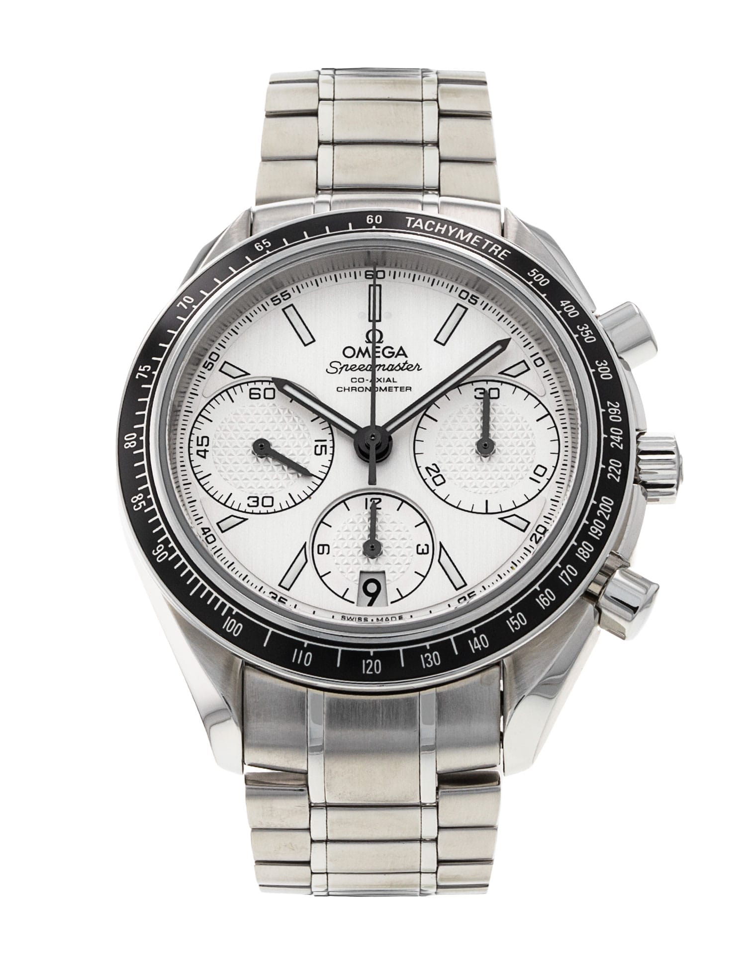 This Omega Speedmaster Racing 326.30.40.50.02.001 has a silver baton dial and a bracelet strap. This Omega has undergone a thorough inspection of accuracy, functionality and condition at our Omega certified service centre to determine the level of reconditioning required to meet our strict standards. It has also been checked against our records to ensure authenticity. All our watches have a 24-month warranty for your peace of mind.