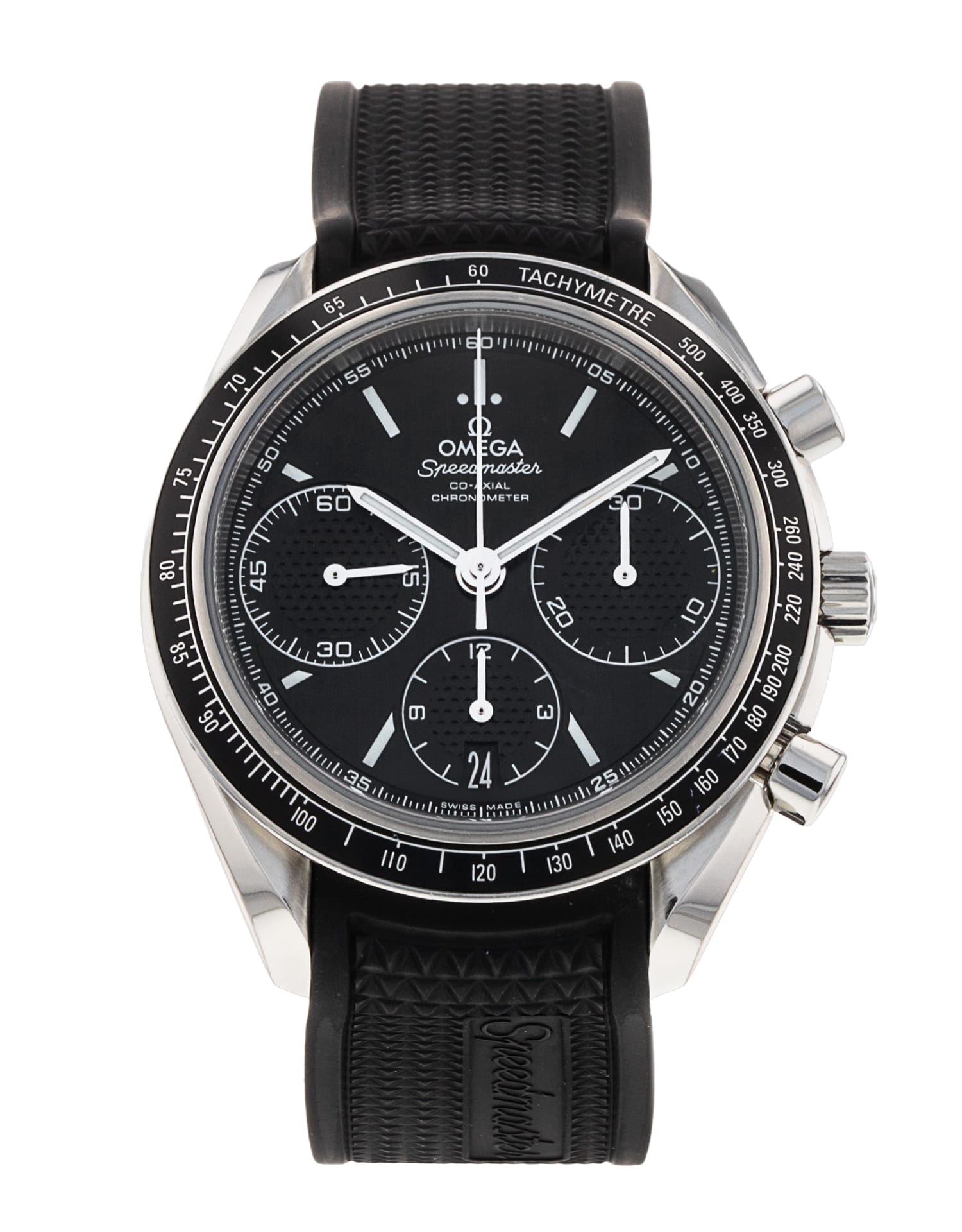 This Omega Speedmaster Racing 326.32.40.50.01.001 has a black baton dial and a rubber strap. This Omega has undergone a thorough inspection of accuracy, functionality and condition at our Omega certified service centre to determine the level of reconditioning required to meet our strict standards. It has also been checked against our records to ensure authenticity. All our watches have a 24-month warranty for your peace of mind.