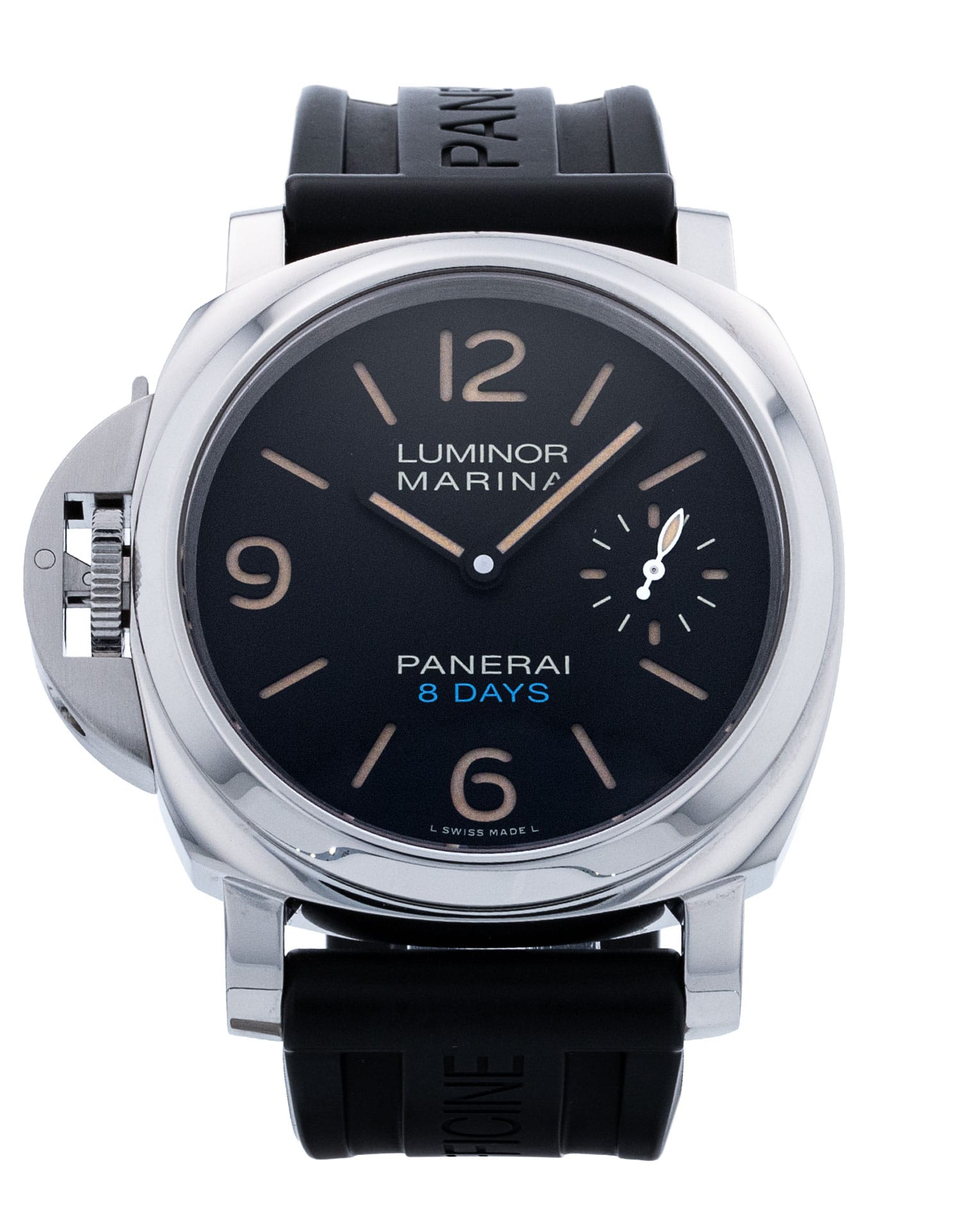 This Panerai Luminor Marina PAM00796 has a black dial and a rubber strap. This Panerai has undergone a thorough inspection of accuracy, functionality and condition at our Panerai certified service centre to determine the level of reconditioning required to meet our strict standards. It has also been checked against our records to ensure authenticity. All our watches have a 24-month warranty for your peace of mind.
