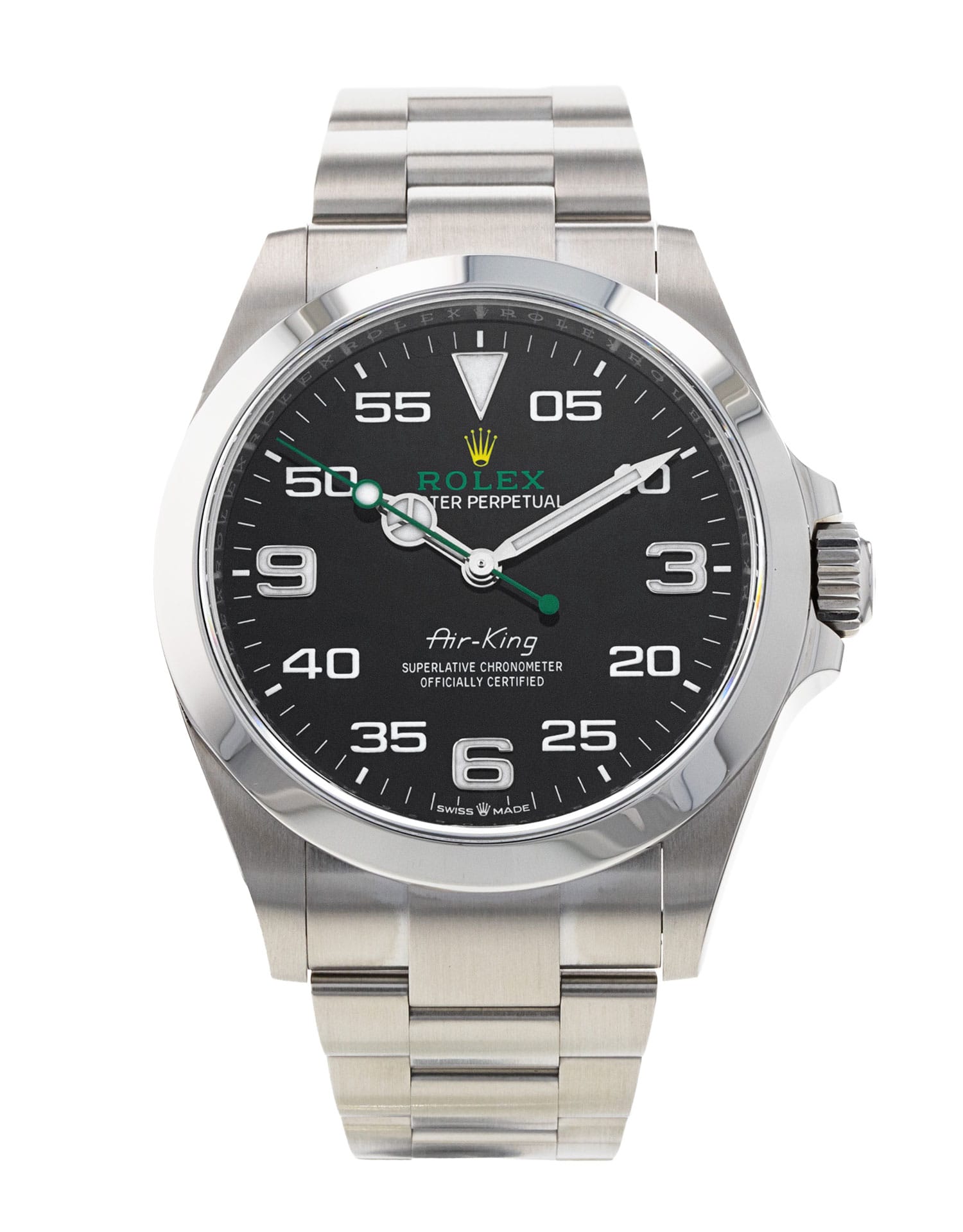 This Rolex Air-King 126900 has a black arabic dial and a bracelet strap. This Rolex has undergone a thorough inspection of water resistance, accuracy, functionality and condition to determine the level of reconditioning required to meet our strict standards. It has also been referenced against technical documents and manufacturer records where available to ensure authenticity and a clean history. All our watches have a 24-month warranty for your peace of mind. One of our skilled polishing technicians has removed marks on the case and bracelet of this watch, brought about by daily wear and tear, which is why this watch does not come with the remaining manufacturer’s warranty.