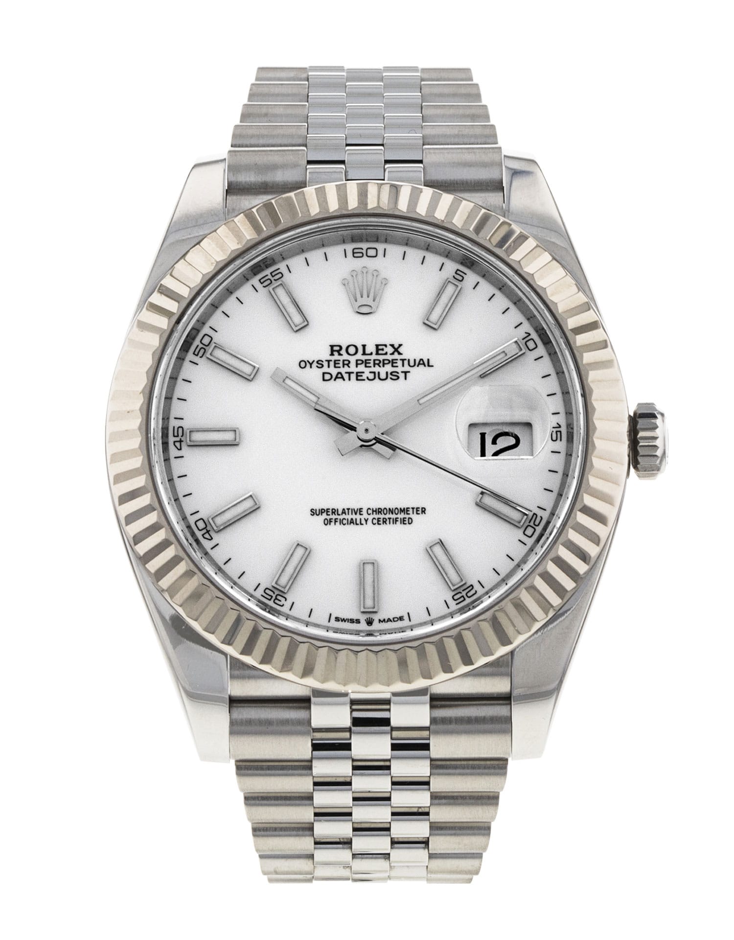 This Rolex Datejust 41 126334 has a white baton dial and a bracelet strap. This Rolex has undergone a thorough inspection of water resistance, accuracy, functionality and condition to determine the level of reconditioning required to meet our strict standards. It has also been referenced against technical documents and manufacturer records where available to ensure authenticity and a clean history. All our watches have a 24-month warranty for your peace of mind. One of our skilled polishing technicians has removed marks on the case and bracelet of this watch, brought about by daily wear and tear, which is why this watch does not come with the remaining manufacturer’s warranty.