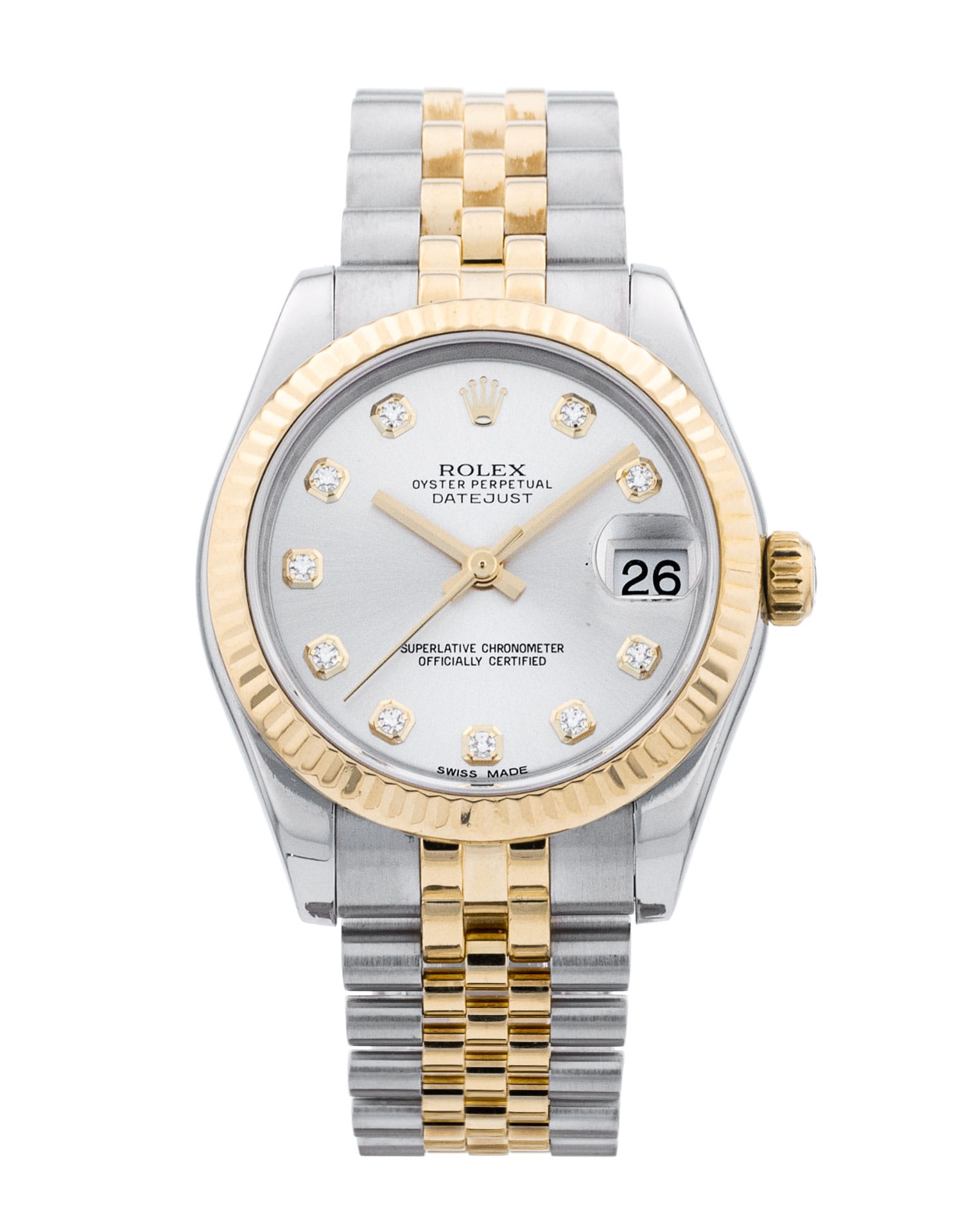 This Rolex Datejust Lady 31 178273 has a silver diamond dial and a bracelet strap. This Rolex has undergone a thorough inspection of water resistance, accuracy, functionality and condition to determine the level of reconditioning required to meet our strict standards. It has also been referenced against technical documents and manufacturer records where available to ensure authenticity and a clean history. All our watches have a 24-month warranty for your peace of mind. One of our skilled polishing technicians has removed marks on the case and bracelet of this watch, brought about by daily wear and tear, which is why this watch does not come with the remaining manufacturer’s warranty.