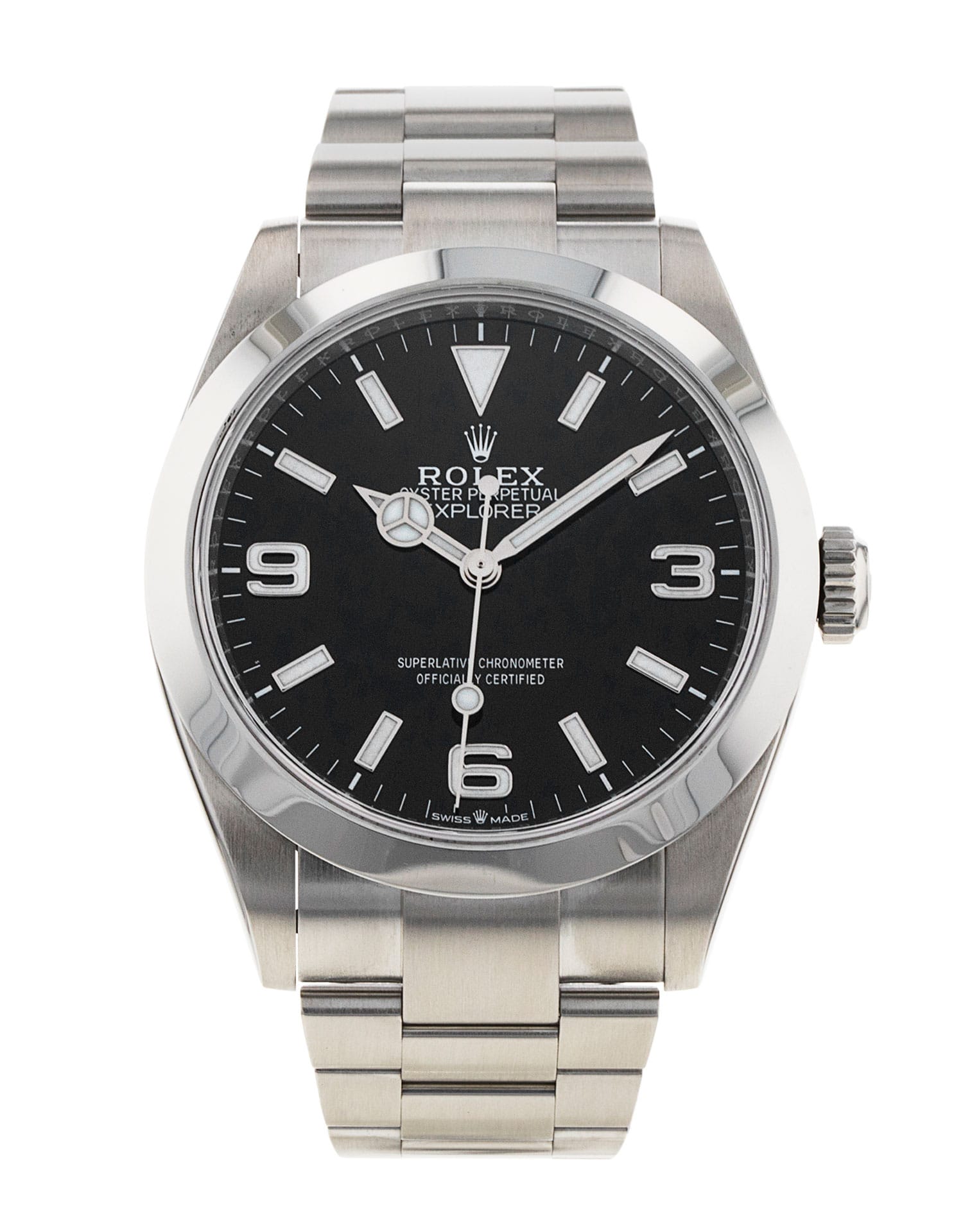 This Rolex Explorer 40 224270 has a black quarter arabic dial and a bracelet strap. This Rolex has undergone a thorough inspection of water resistance, accuracy, functionality and condition to determine the level of reconditioning required to meet our strict standards. It has also been referenced against technical documents and manufacturer records where available to ensure authenticity and a clean history. All our watches have a 24-month warranty for your peace of mind. One of our skilled polishing technicians has removed marks on the case and bracelet of this watch, brought about by daily wear and tear, which is why this watch does not come with the remaining manufacturer’s warranty.