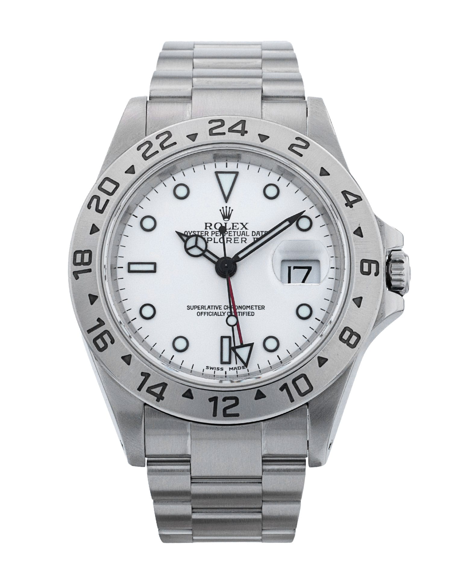 This Rolex Explorer II 16570 has a white dial and a bracelet strap. This Rolex has undergone a thorough inspection of water resistance, accuracy, functionality and condition to determine the level of reconditioning required to meet our strict standards. It has also been referenced against technical documents and manufacturer records where available to ensure authenticity and a clean history. All our watches have a 24-month warranty for your peace of mind. One of our skilled polishing technicians has removed marks on the case and bracelet of this watch, brought about by daily wear and tear, which is why this watch does not come with the remaining manufacturer’s warranty.