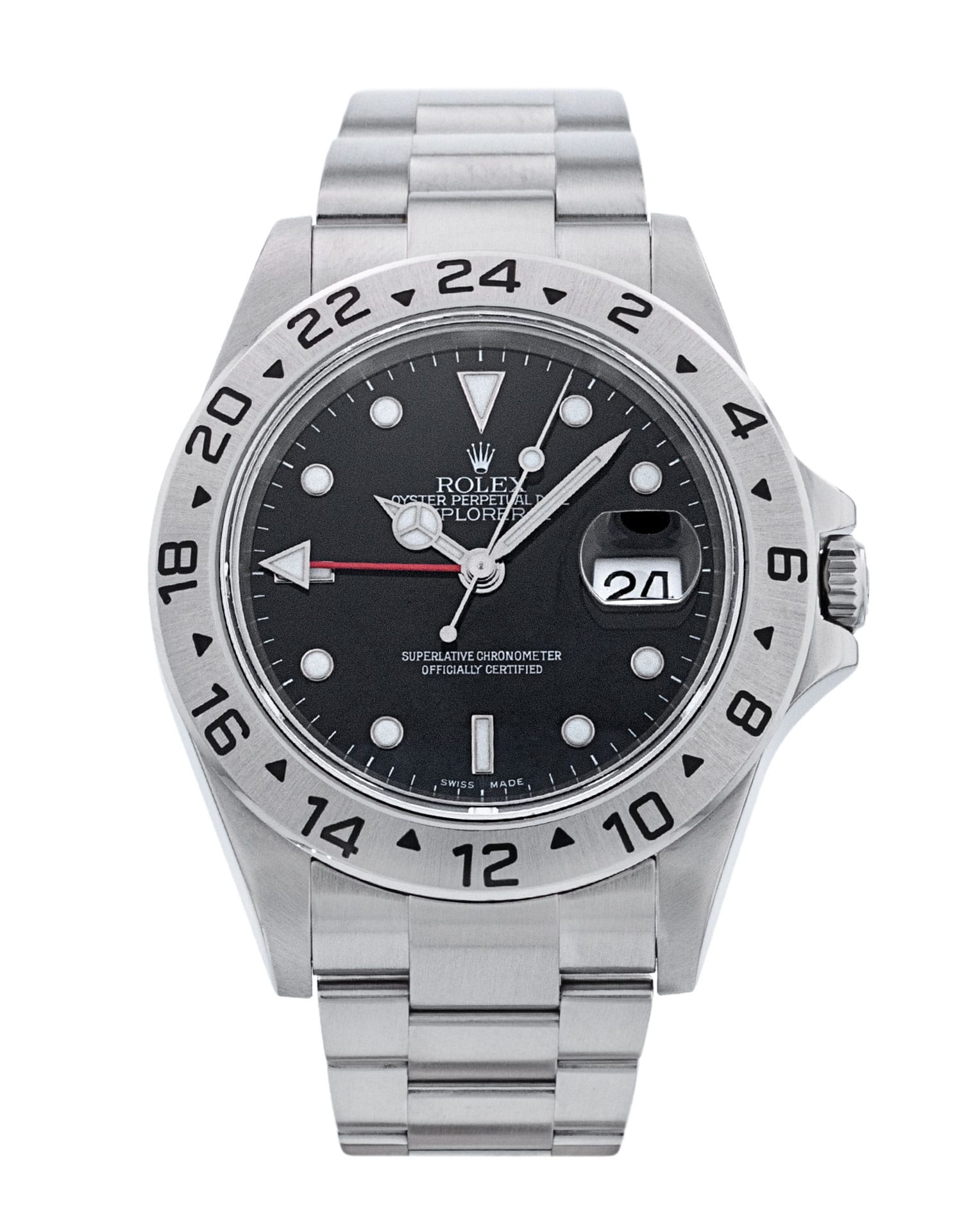 This Rolex Explorer II 16570 has a black dial and a bracelet strap. This Rolex has undergone a thorough inspection of water resistance, accuracy, functionality and condition to determine the level of reconditioning required to meet our strict standards. It has also been referenced against technical documents and manufacturer records where available to ensure authenticity and a clean history. All our watches have a 24-month warranty for your peace of mind. One of our skilled polishing technicians has removed marks on the case and bracelet of this watch, brought about by daily wear and tear, which is why this watch does not come with the remaining manufacturer’s warranty.
