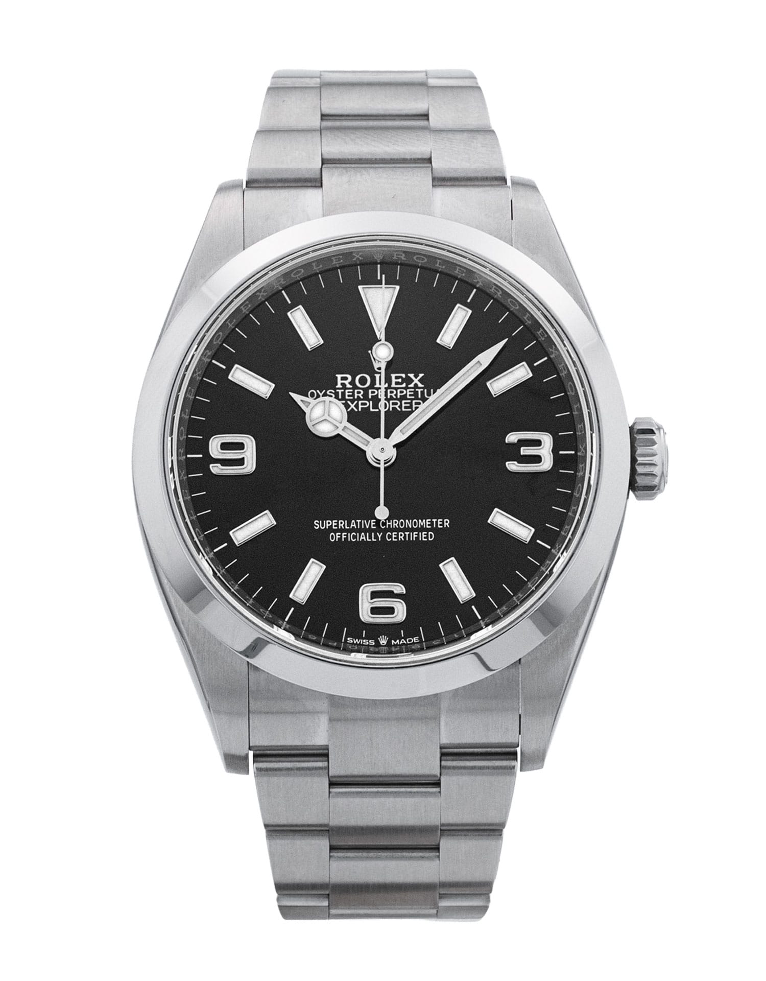 This Rolex Explorer 124270 has a black quarter arabic dial and a bracelet strap. This Rolex has undergone a thorough inspection of water resistance, accuracy, functionality and condition to determine the level of reconditioning required to meet our strict standards. It has also been referenced against technical documents and manufacturer records where available to ensure authenticity and a clean history. All our watches have a 24-month warranty for your peace of mind. One of our skilled polishing technicians has removed marks on the case and bracelet of this watch, brought about by daily wear and tear, which is why this watch does not come with the remaining manufacturer’s warranty.