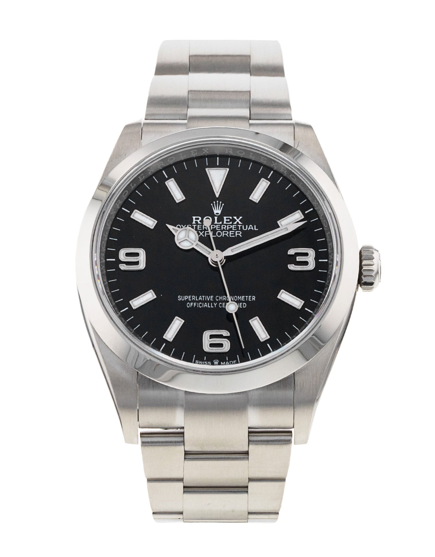 This Rolex Explorer 124270 has a black quarter arabic dial and a bracelet strap. This Rolex has undergone a thorough inspection of water resistance, accuracy, functionality and condition to determine the level of reconditioning required to meet our strict standards. It has also been referenced against technical documents and manufacturer records where available to ensure authenticity and a clean history. Our watches have a 24-month warranty for your peace of mind, in conjunction with any remaining manufacturer’s warranty from new or from service. To maintain the manufacturer’s warranty on this watch, it has not been polished in our service centre.
