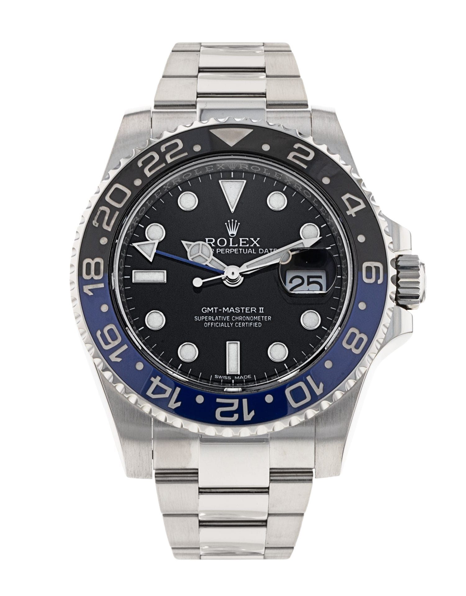 This Rolex GMT Master II 116710 BLNR has a black dial and a bracelet strap. This Rolex has undergone a thorough inspection of water resistance, accuracy, functionality and condition to determine the level of reconditioning required to meet our strict standards. It has also been referenced against technical documents and manufacturer records where available to ensure authenticity and a clean history. All our watches have a 24-month warranty for your peace of mind. One of our skilled polishing technicians has removed marks on the case and bracelet of this watch, brought about by daily wear and tear, which is why this watch does not come with the remaining manufacturer’s warranty.