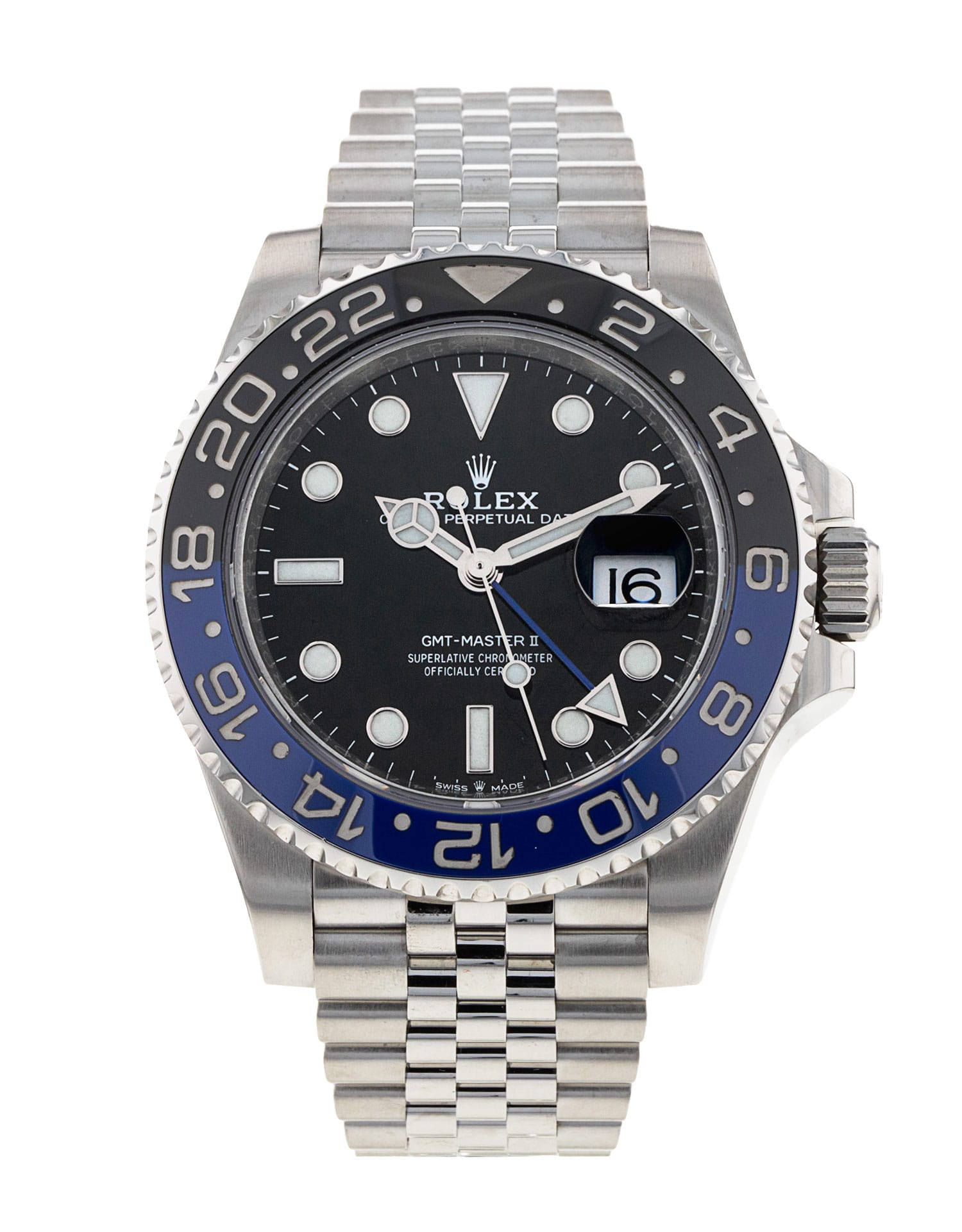 This Rolex GMT Master II 126710 BLNR has a black dial and a bracelet strap. This Rolex has undergone a thorough inspection of water resistance, accuracy, functionality and condition to determine the level of reconditioning required to meet our strict standards. It has also been referenced against technical documents and manufacturer records where available to ensure authenticity and a clean history. All our watches have a 24-month warranty for your peace of mind. One of our skilled polishing technicians has removed marks on the case and bracelet of this watch, brought about by daily wear and tear, which is why this watch does not come with the remaining manufacturer’s warranty.