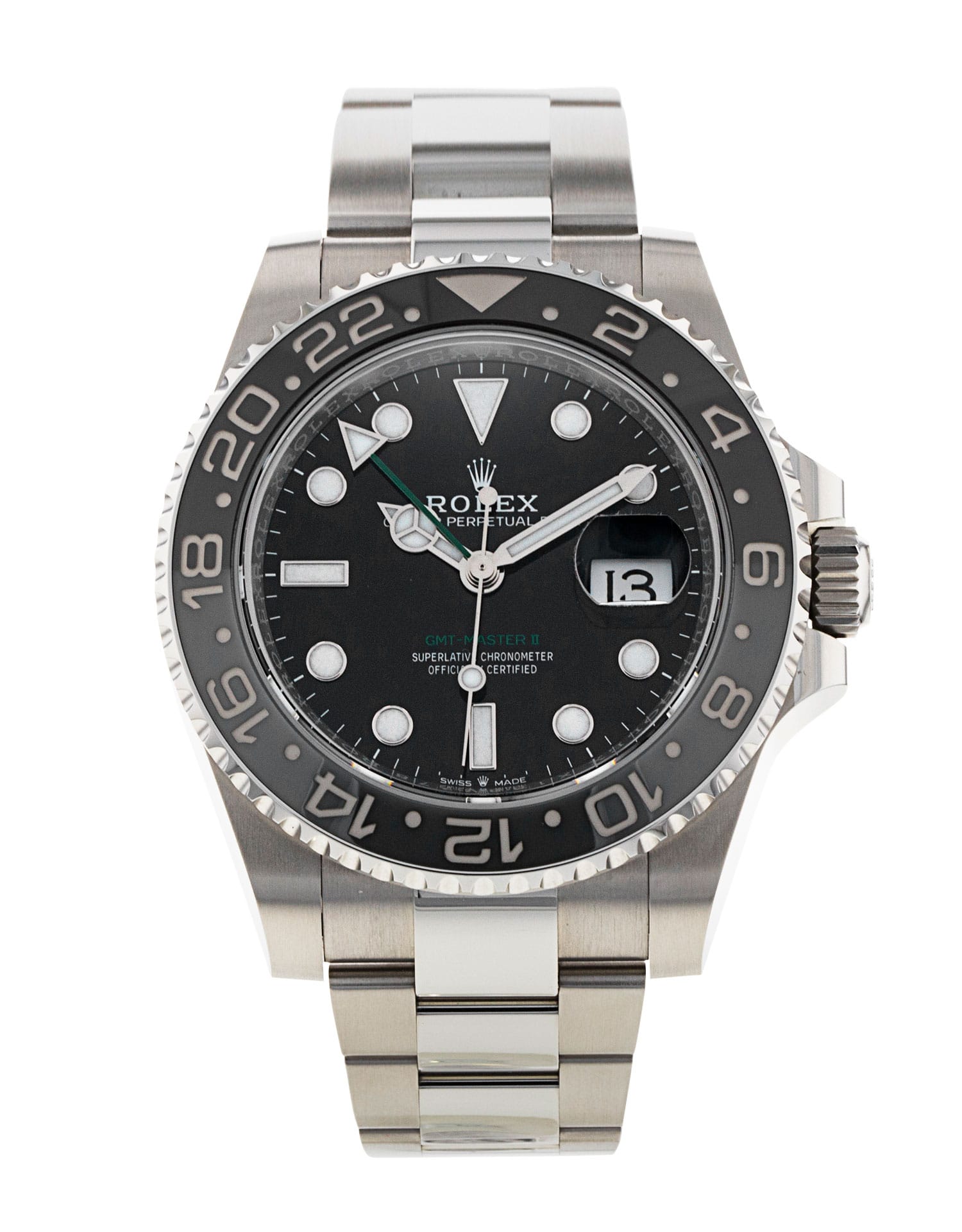 This Rolex GMT Master II 126710 GRNR has a black dial and a bracelet strap. This Rolex has undergone a thorough inspection of water resistance, accuracy, functionality and condition to determine the level of reconditioning required to meet our strict standards. It has also been referenced against technical documents and manufacturer records where available to ensure authenticity and a clean history. Our watches have a 24-month warranty for your peace of mind, in conjunction with any remaining manufacturer’s warranty from new or from service. To maintain the manufacturer’s warranty on this watch, it has not been polished in our service centre.