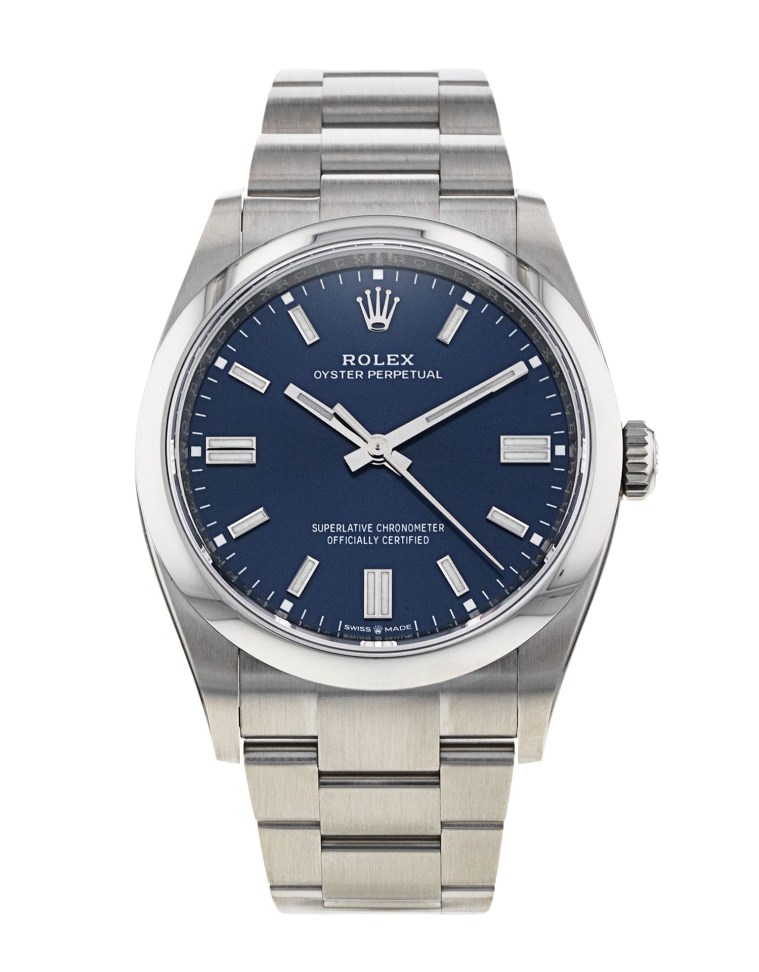 This Rolex Oyster Perpetual 126000 has a blue baton dial and a bracelet strap. This Rolex has undergone a thorough inspection of water resistance, accuracy, functionality and condition to determine the level of reconditioning required to meet our strict standards. It has also been referenced against technical documents and manufacturer records where available to ensure authenticity and a clean history. Our watches have a 24-month warranty for your peace of mind, in conjunction with any remaining manufacturer’s warranty from new or from service. To maintain the manufacturer’s warranty on this watch, it has not been polished in our service centre.