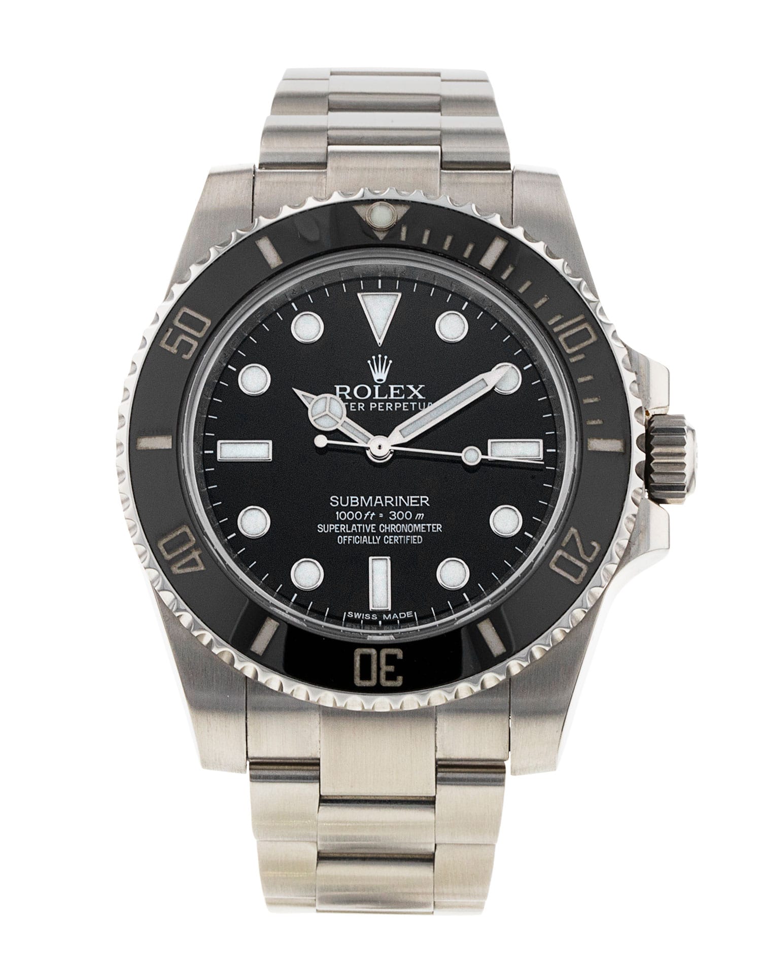 This is a superb example of a 'no-date' Submariner—a model that is prized for its cleaner, pared-down look and symmetrical design that many collectors appreciate. The ref 114060 follows on from and updates the 14060M, which began life with series P in the year 2000—but its predecessor, the plain 14060, was in production as early as 1990. Fans will also point out that the original Submariners, from their introduction in 1953, did not have date windows. While this model continues to use the flawless in-house calibre 3130, it vastly improves the bezel with high-tech ceramic and also upgrades the bracelet.