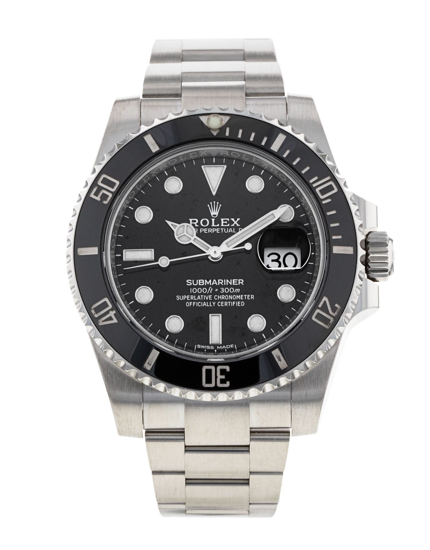 This Rolex Submariner 116610 LN has a black dial and a bracelet strap. This Rolex has undergone a thorough inspection of water resistance, accuracy, functionality and condition to determine the level of reconditioning required to meet our strict standards. It has also been referenced against technical documents and manufacturer records where available to ensure authenticity and a clean history. All our watches have a 24-month warranty for your peace of mind. One of our skilled polishing technicians has removed marks on the case and bracelet of this watch, brought about by daily wear and tear, which is why this watch does not come with the remaining manufacturer’s warranty.