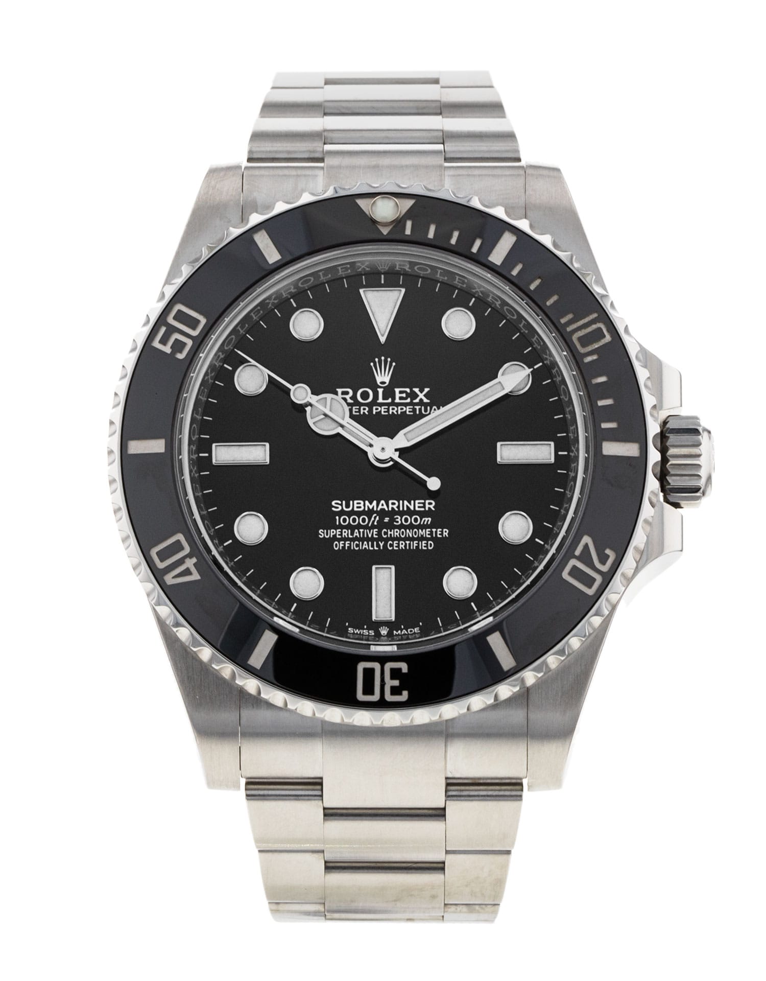This Rolex Submariner 124060 has a black dial and a bracelet strap. This Rolex has undergone a thorough inspection of water resistance, accuracy, functionality and condition to determine the level of reconditioning required to meet our strict standards. It has also been referenced against technical documents and manufacturer records where available to ensure authenticity and a clean history. Our watches have a 24-month warranty for your peace of mind, in conjunction with any remaining manufacturer’s warranty from new or from service. To maintain the manufacturer’s warranty on this watch, it has not been polished in our service centre.