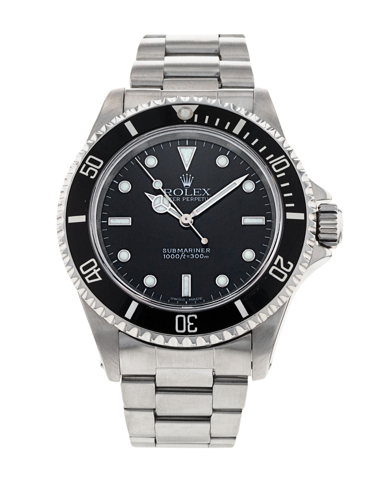 This Rolex Submariner 14060M has a black dial and a bracelet strap. This Rolex has undergone a thorough inspection of water resistance, accuracy, functionality and condition to determine the level of reconditioning required to meet our strict standards. It has also been referenced against technical documents and manufacturer records where available to ensure authenticity and a clean history. All our watches have a 24-month warranty for your peace of mind. One of our skilled polishing technicians has removed marks on the case and bracelet of this watch, brought about by daily wear and tear, which is why this watch does not come with the remaining manufacturer’s warranty.