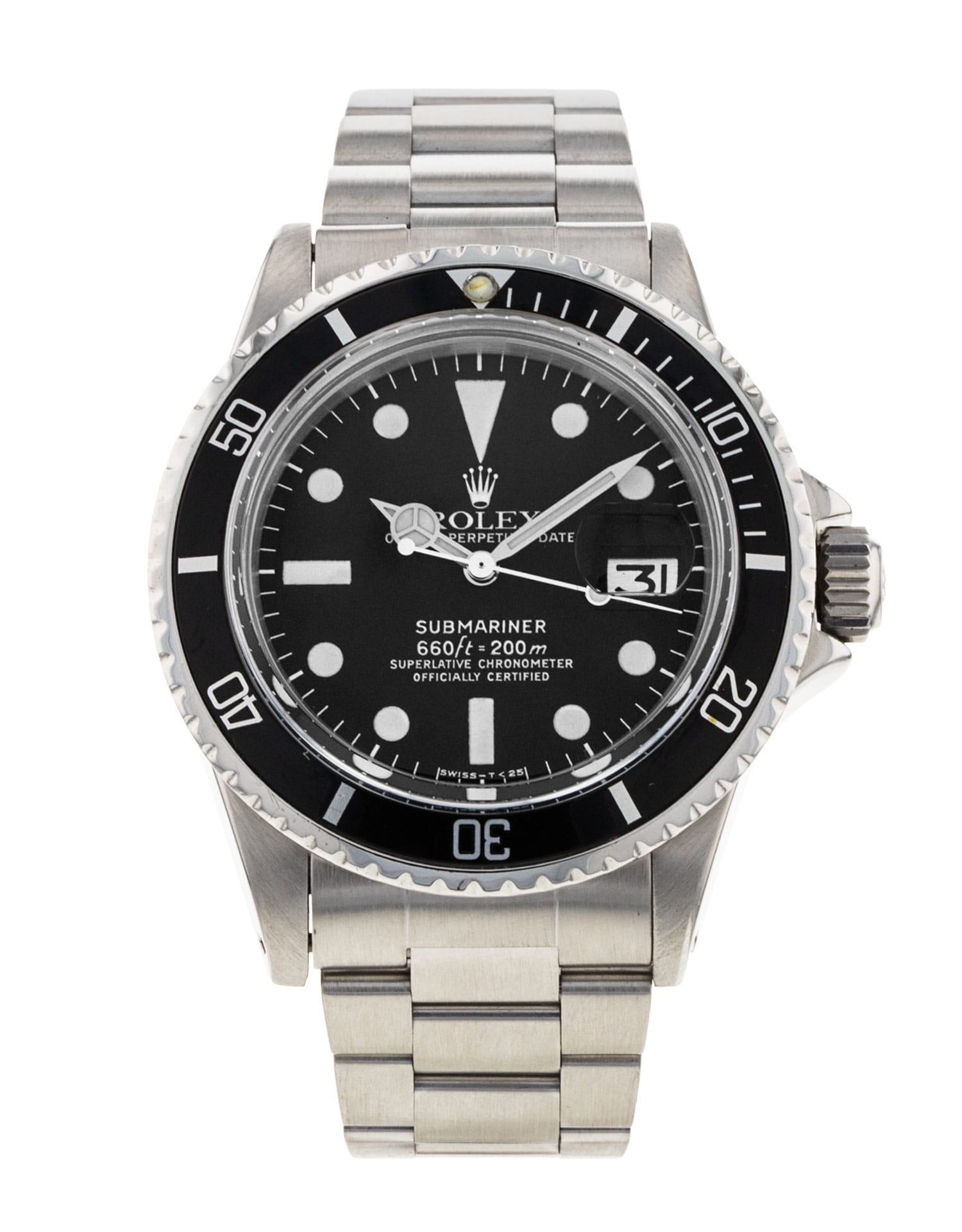 This Rolex Submariner 1680 has a black dial and a bracelet strap. Due to age, this Rolex may not fall within our typical expected tolerances for timekeeping, and is no longer suitable for use in wet environments or submersion in water. In the interests of preserving original features, utmost care has been taken to sympathetically restore this watch. It has also been referenced against technical documents and manufacturer records where available to ensure authenticity and a clean history. One of our skilled polishing technicians has removed marks on the case and bracelet of this watch, brought about by daily wear and tear, which is why this watch does not come with the remaining manufacturer’s warranty.