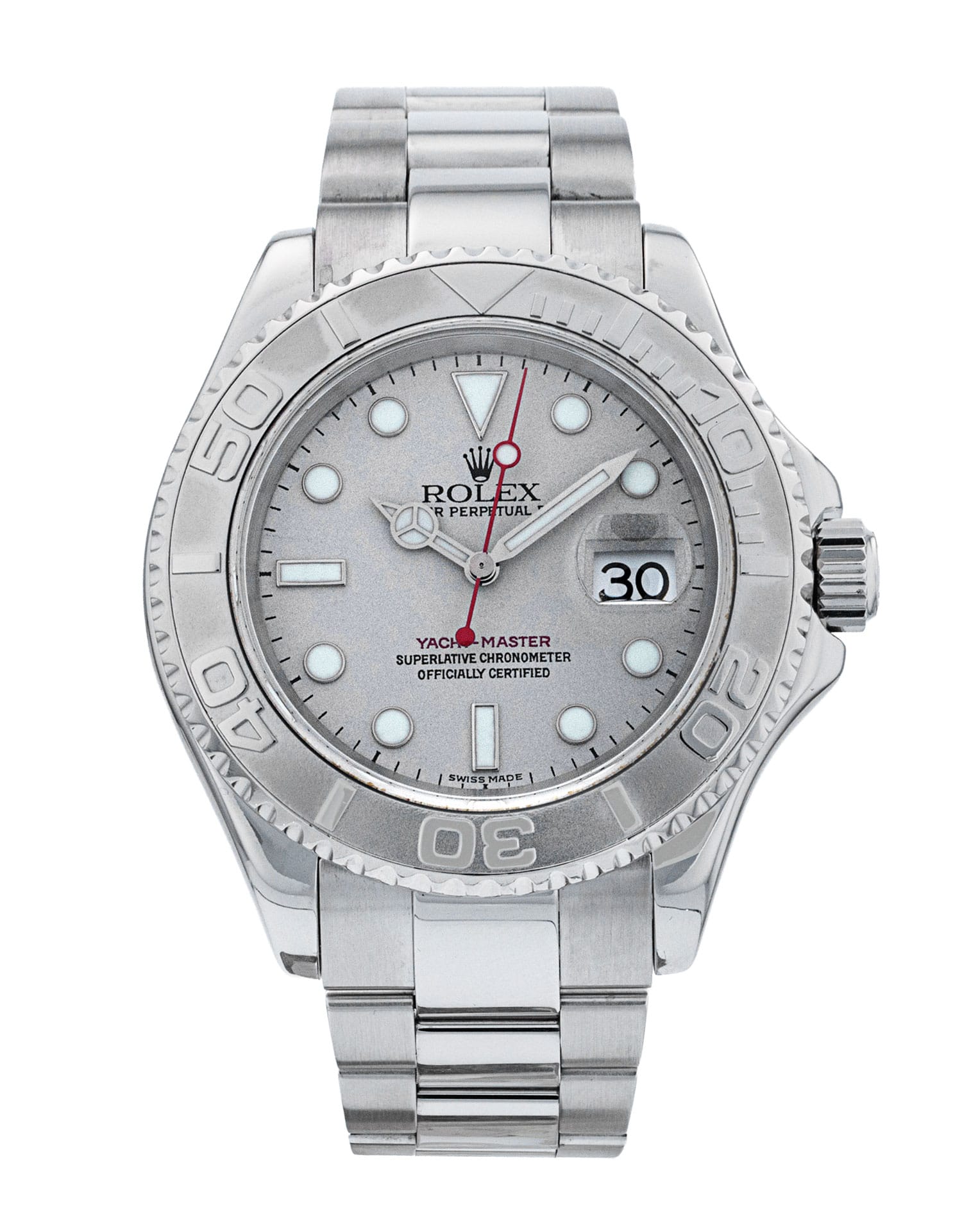 This Rolex Yacht-Master 16622 has a platinum dial and a bracelet strap. This Rolex has undergone a thorough inspection of water resistance, accuracy, functionality and condition to determine the level of reconditioning required to meet our strict standards. It has also been referenced against technical documents and manufacturer records where available to ensure authenticity and a clean history. All our watches have a 24-month warranty for your peace of mind. One of our skilled polishing technicians has removed marks on the case and bracelet of this watch, brought about by daily wear and tear, which is why this watch does not come with the remaining manufacturer’s warranty.