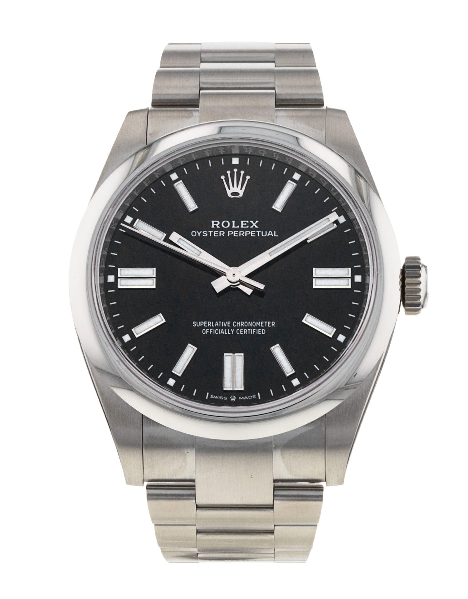 This Rolex Oyster Perpetual 41 134300 has a black dial and a bracelet strap. This Rolex has undergone a thorough inspection of water resistance, accuracy, functionality and condition to determine the level of reconditioning required to meet our strict standards. It has also been referenced against technical documents and manufacturer records where available to ensure authenticity and a clean history. Our watches have a 24-month warranty for your peace of mind, in conjunction with any remaining manufacturer’s warranty from new or from service. To maintain the manufacturer’s warranty on this watch, it has not been polished in our service centre.