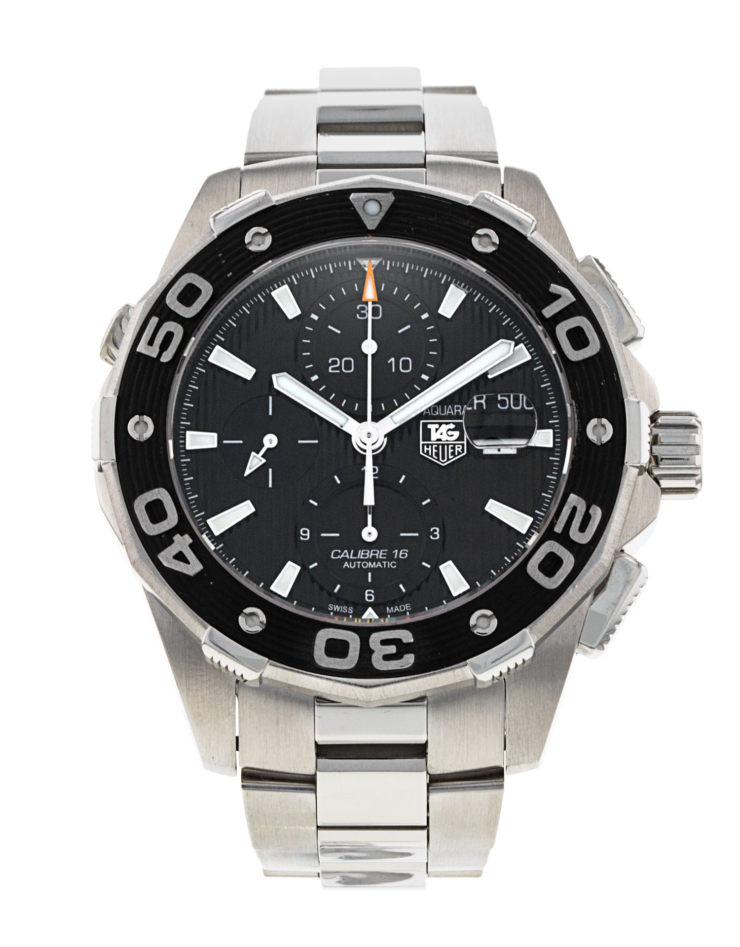 This Tag Heuer Aquaracer CAJ2110.BA0872 has a black baton dial and a bracelet strap. This Tag Heuer has undergone a thorough inspection of accuracy, functionality and condition at our Tag Heuer certified service centre to determine the level of reconditioning required to meet our strict standards. It has also been checked against our records to ensure authenticity. All our watches have a 24-month warranty for your peace of mind.